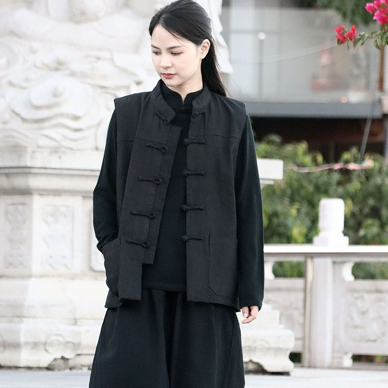 佛系禅意新中式女装中国风冬棉麻亚麻上衣女高端马夹唐装加绒马甲
