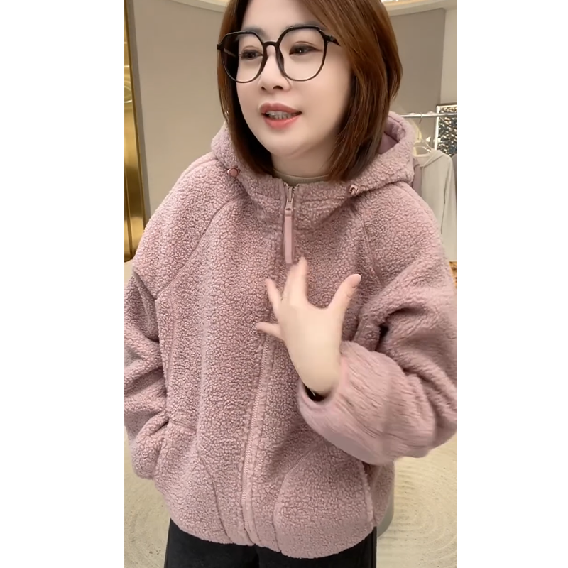 2025冬季新款时尚加厚保暖颗粒绒外套女洋气宽松双面穿连帽棉服潮
