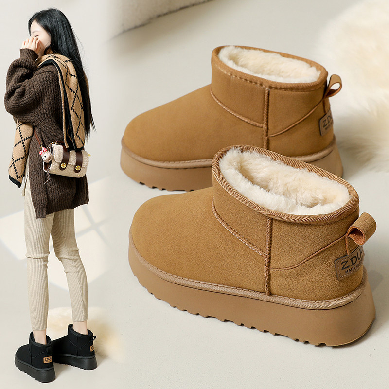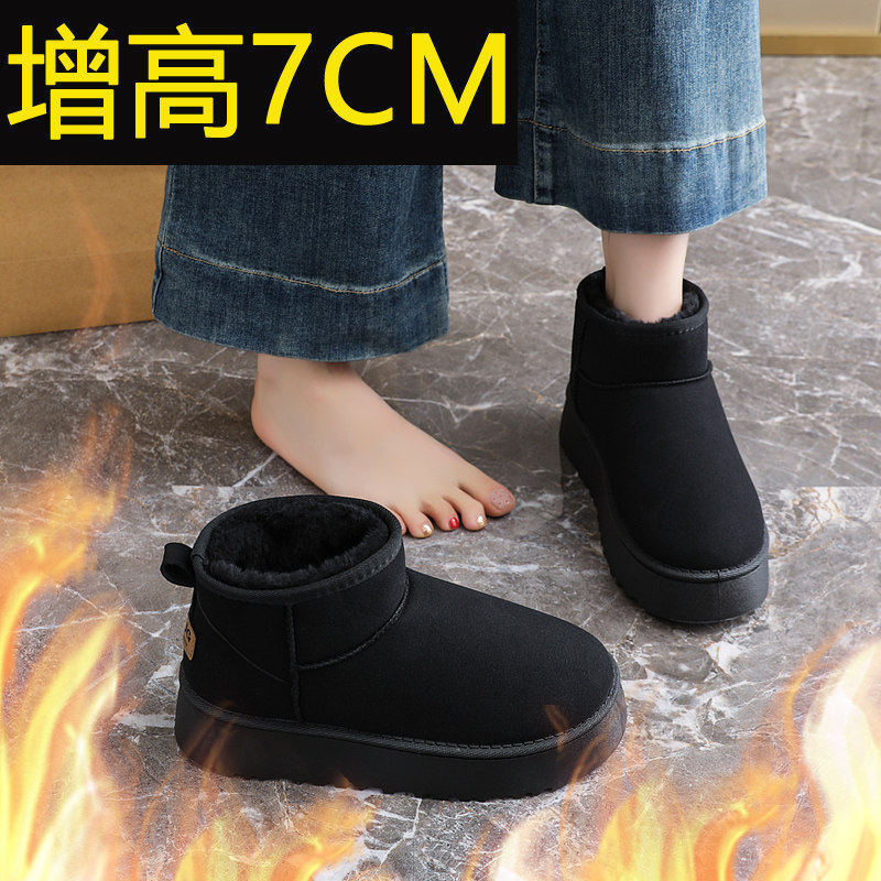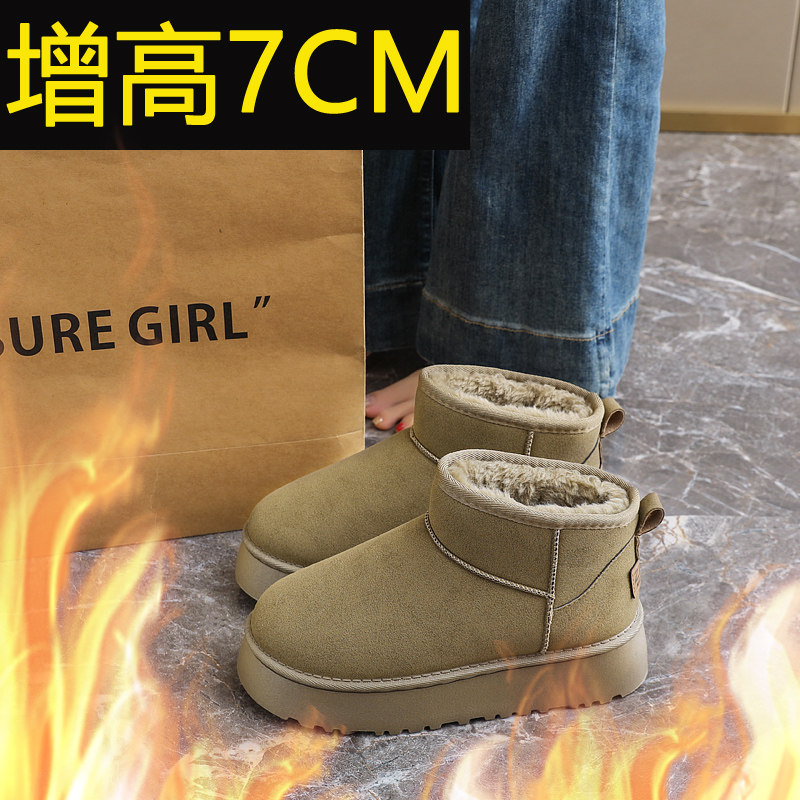 内增高7CM雪地靴女2025新款冬季加绒高帮棉鞋小个子增高34码短靴