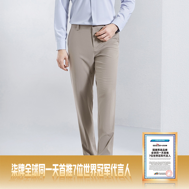 【含莫代尔】柒牌西裤男春季新款商务通勤绣花直筒西装长裤子