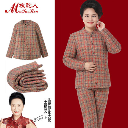 中老年棉衣女式妈妈装驼绒厚棉袄棉毛裤老奶奶棉服保暖套装棉裤冬