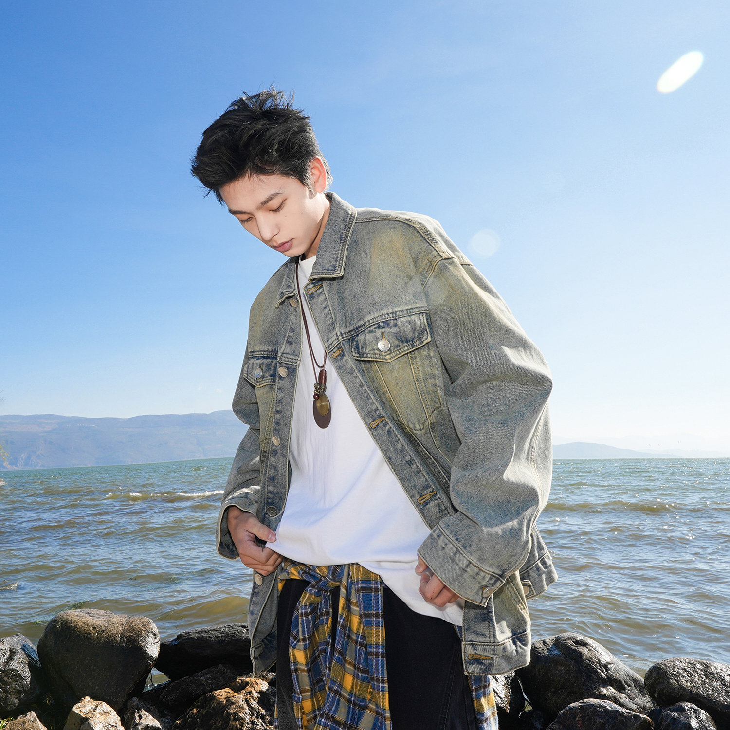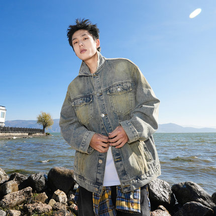 GOGOSOON牛仔外套2025春秋季新款男士280g复古做旧水洗宽松夹克潮