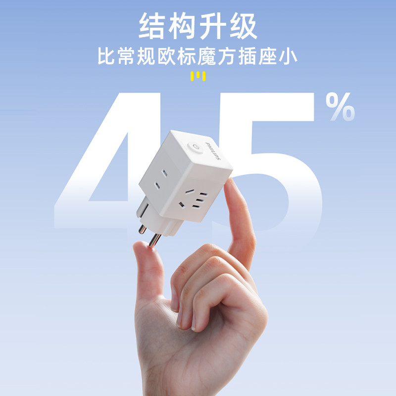 飞利浦欧标转换头便携魔方插座旅行插头德标转换器一转多口充电头