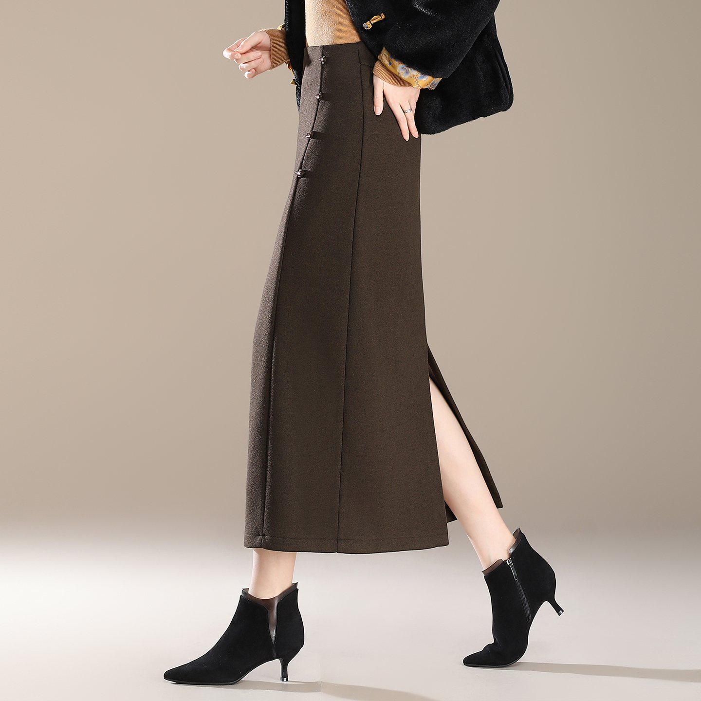 羊毛呢包臀裙女秋冬半身裙2025新款后开叉高腰直筒裙通勤一步长裙