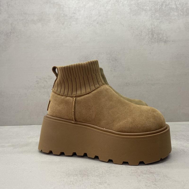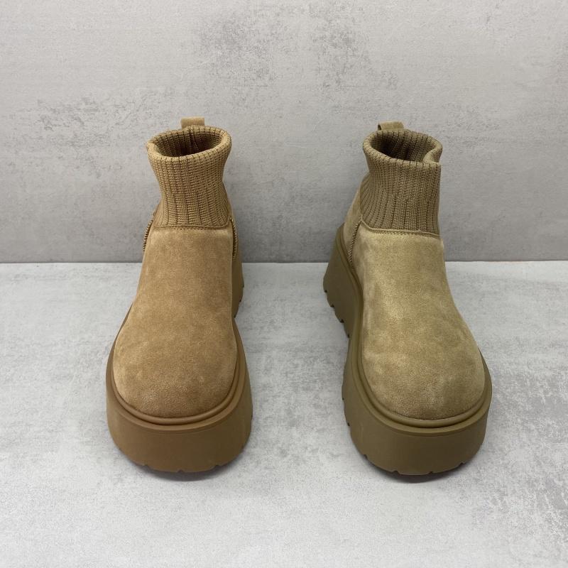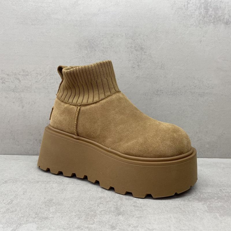 断码处理2024秋冬真皮女靴复古增高厚底雪地靴磨砂皮保暖短筒棉靴