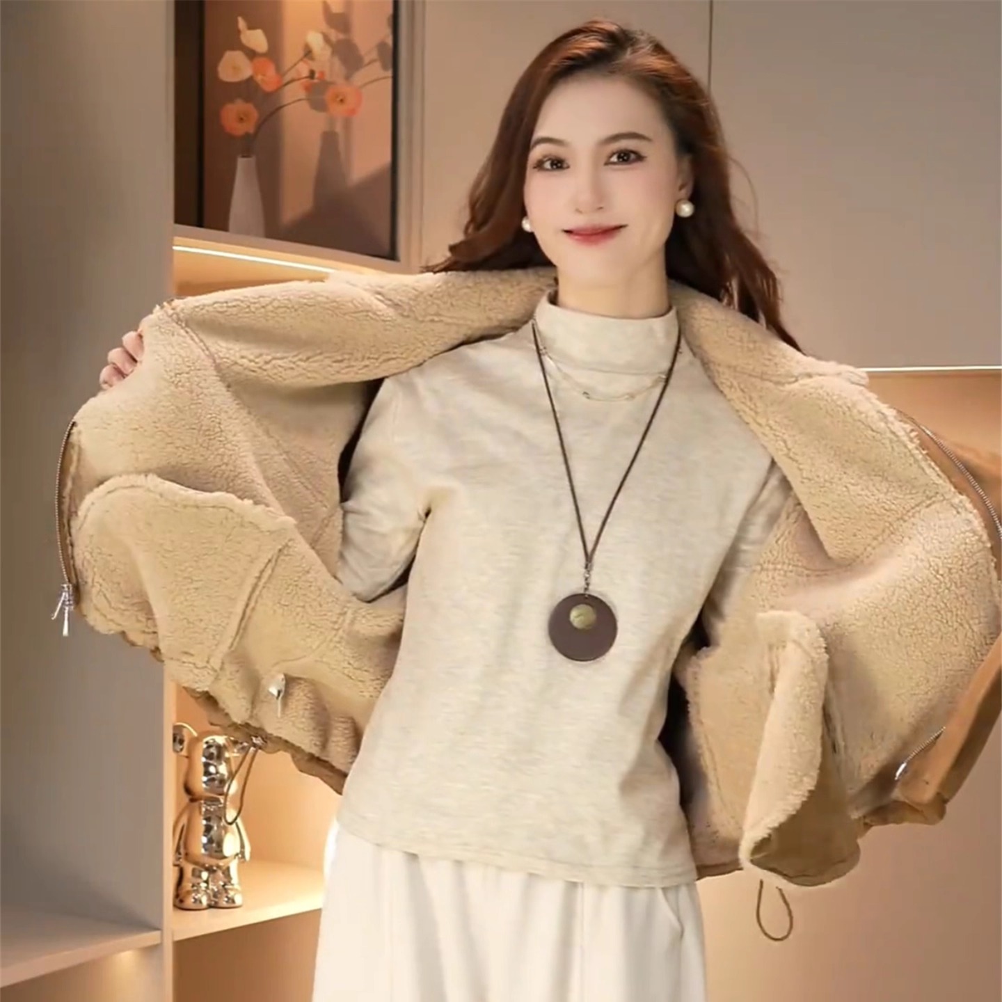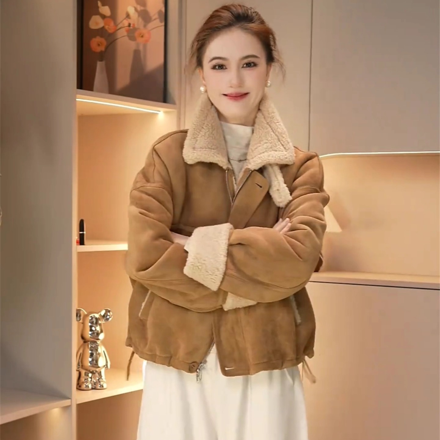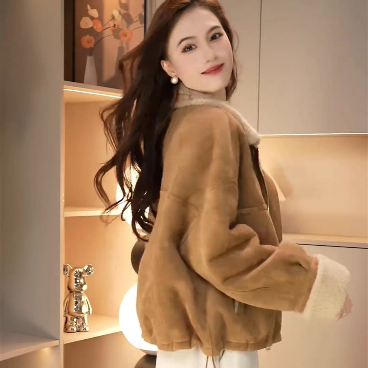羊羔毛外套女短款加绒秋冬新款2025高级感小个子宽松麂皮绒上衣