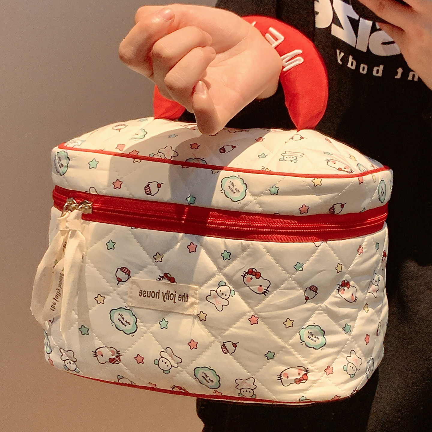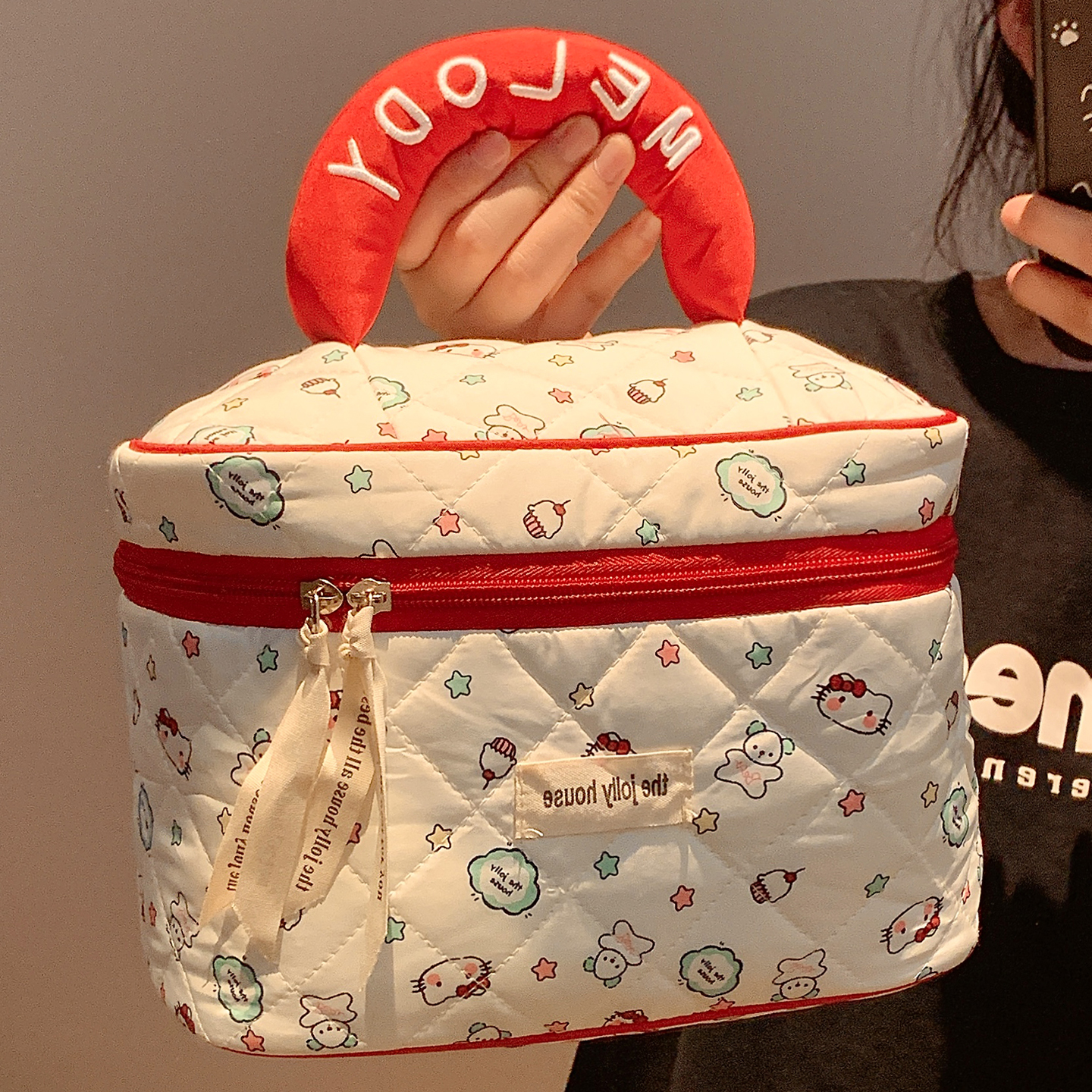 可爱手提猫咪化妆包女便携大容量护肤品洗漱包旅行外出分区收纳包