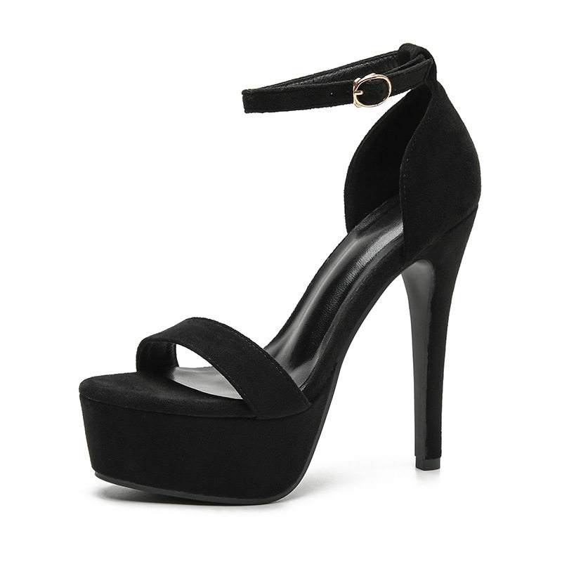 13CM细跟凉鞋黑色高跟鞋防水台艺考生模特舞T台走秀一字扣带女鞋