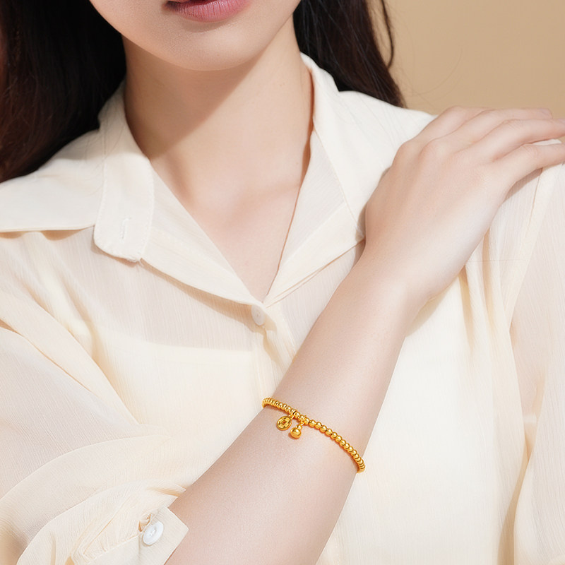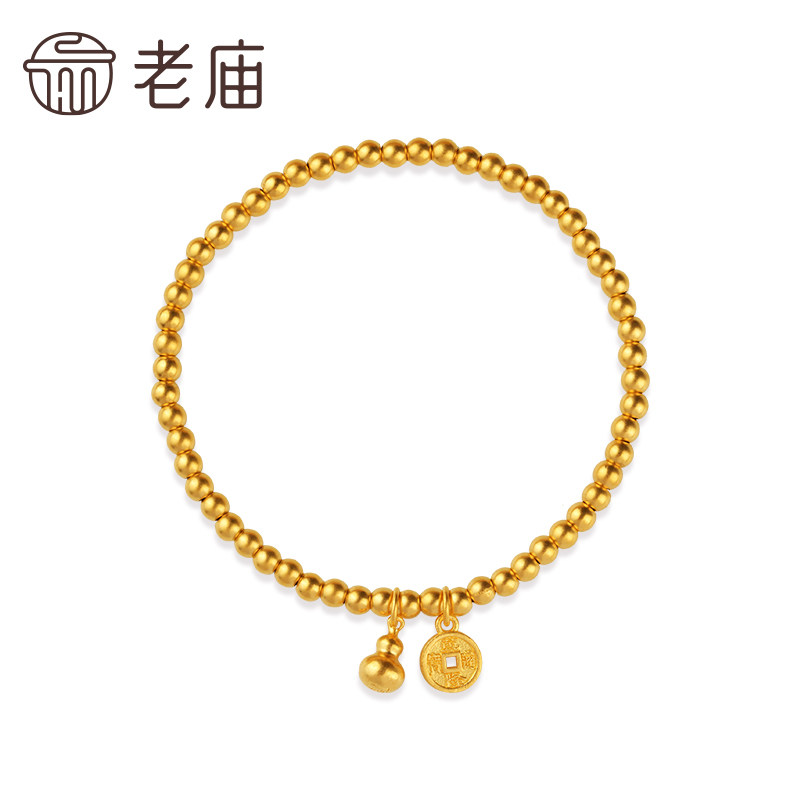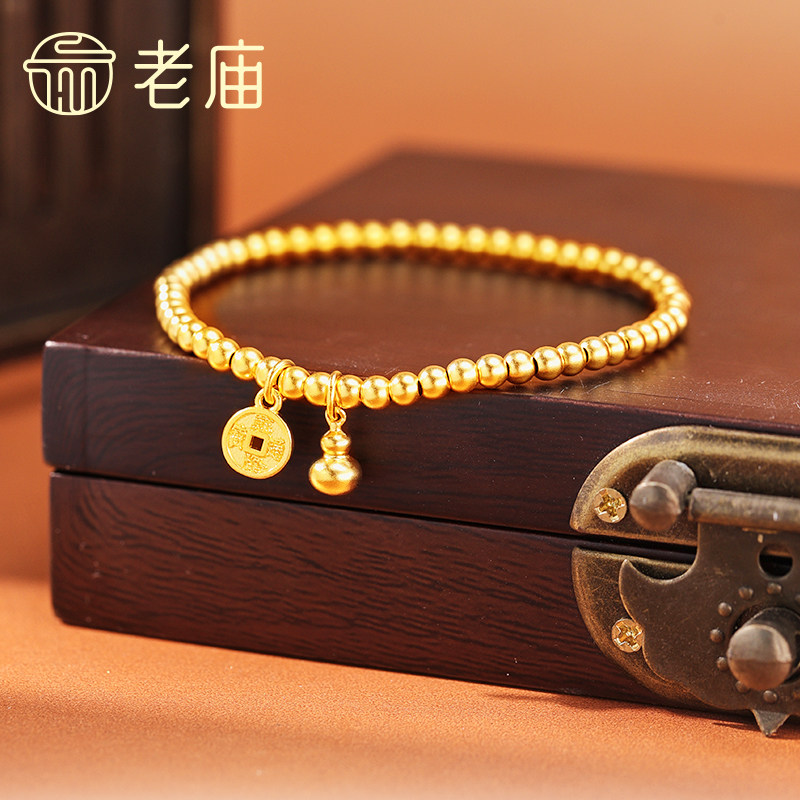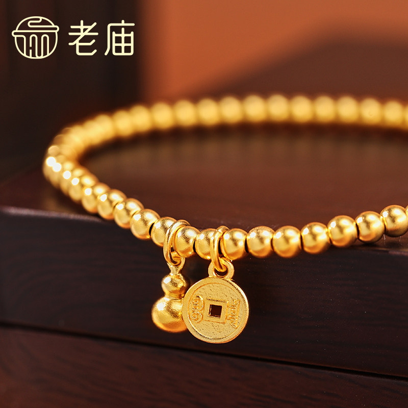 老庙黄金古法金福禄前途圆珠足金999手串弹力手饰送礼官方正品