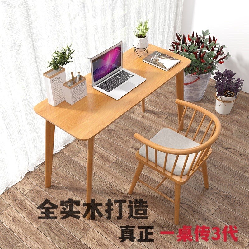 全实木台式电脑窄小书桌子卧室家用办公写字学习长条简约双人靠墙