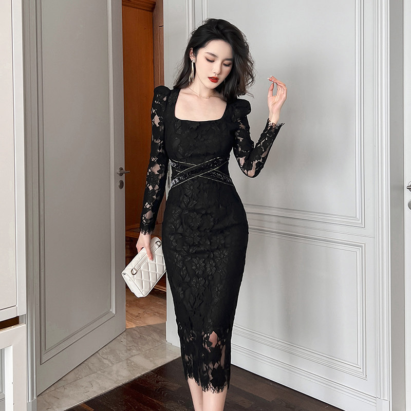 气质蕾丝连衣裙秋冬2025新款女装高级感包臀收腰显瘦长袖裙子内搭