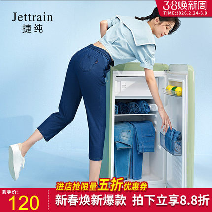 捷纯哈伦牛仔裤女夏薄款2026年新款宽松弹力高腰八分裤冰丝软裤子