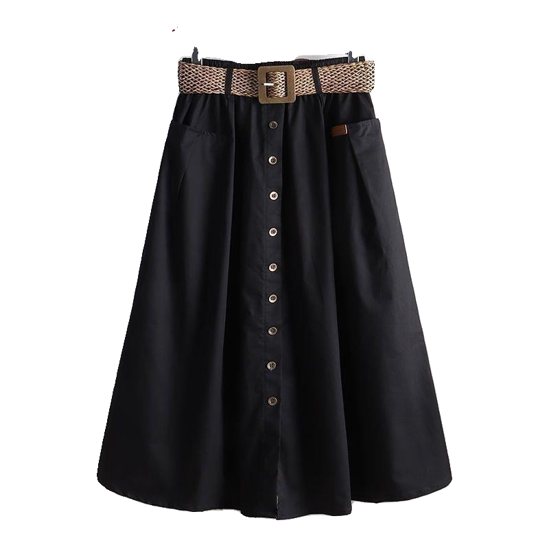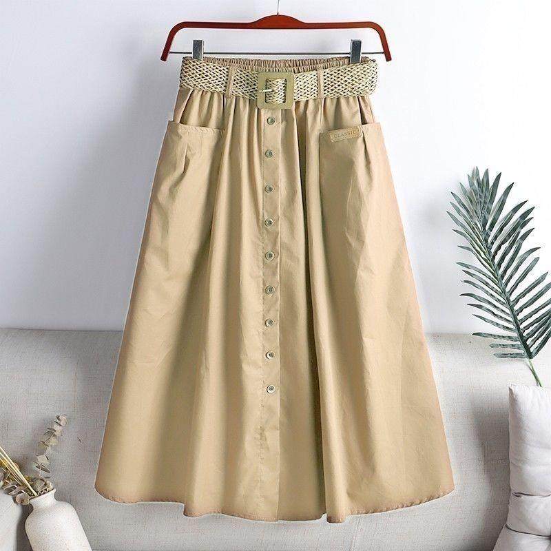 专柜撤回清仓捡漏大码女装胖mm遮肚显瘦高腰中长款百搭纯色A字裙