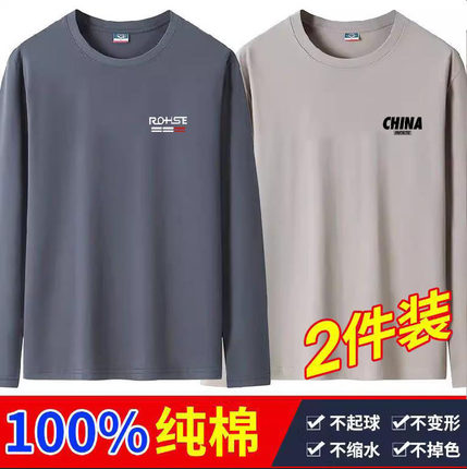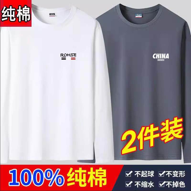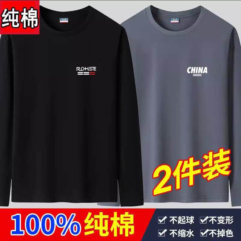 春秋季男士棉布长袖t恤男装宽松秋衣大码上衣潮打底衫1/2件装休闲