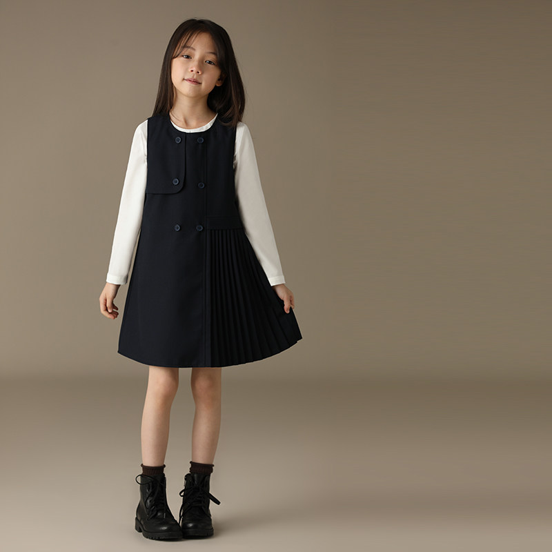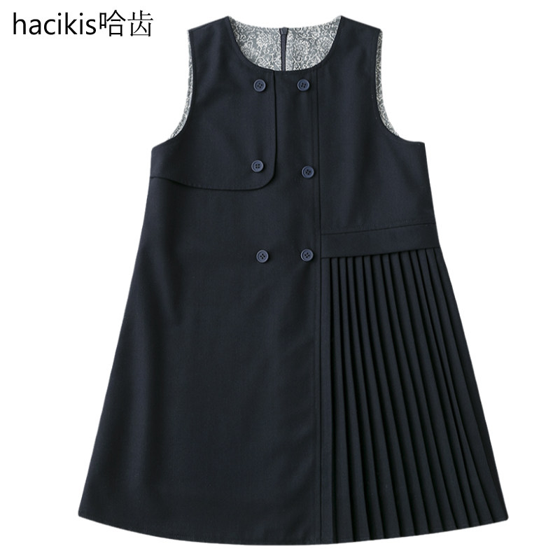 哈齿童装春秋儿童背心裙百褶裙学院风女童连衣裙中大童正装礼服裙