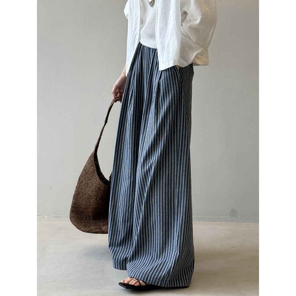 言双高腰阔腿神裤女夏新款 条纹直筒裤宽松显瘦 拉长腿型休闲长裤