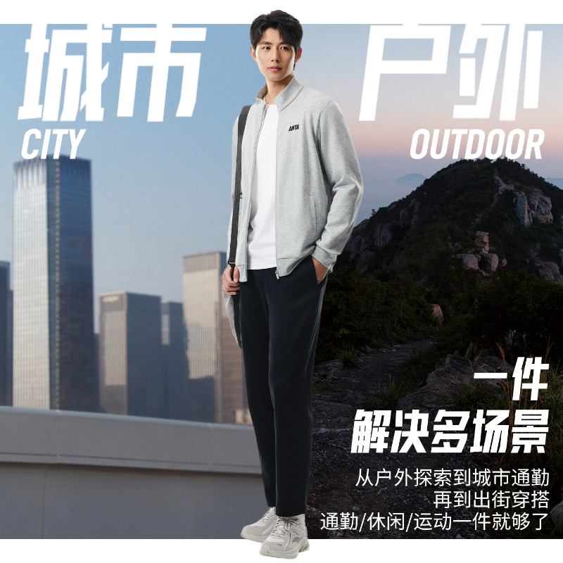 安踏运动套装男士冬季新款立领开衫卫衣外套加绒保暖上衣长裤男装