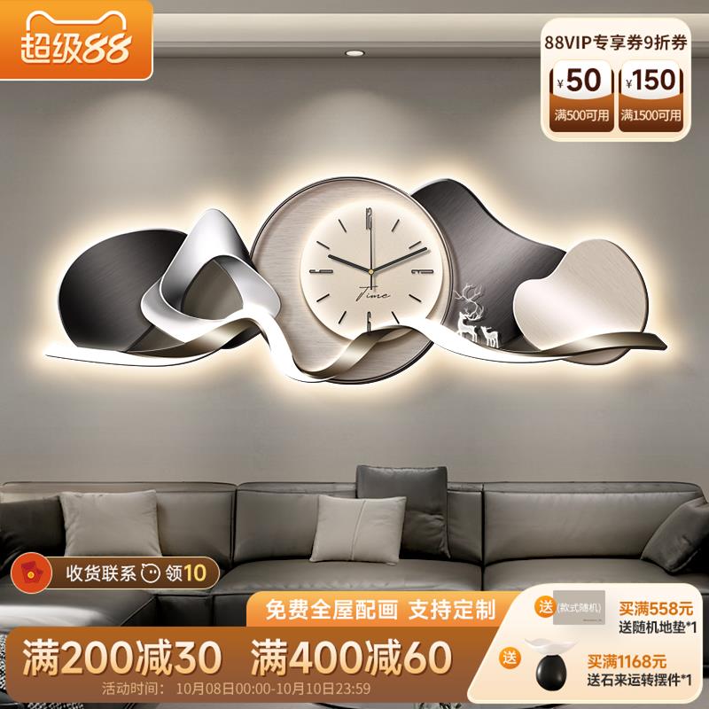 高级感石来运转客厅装饰画带钟表现代轻奢沙发背景墙面挂画壁灯画