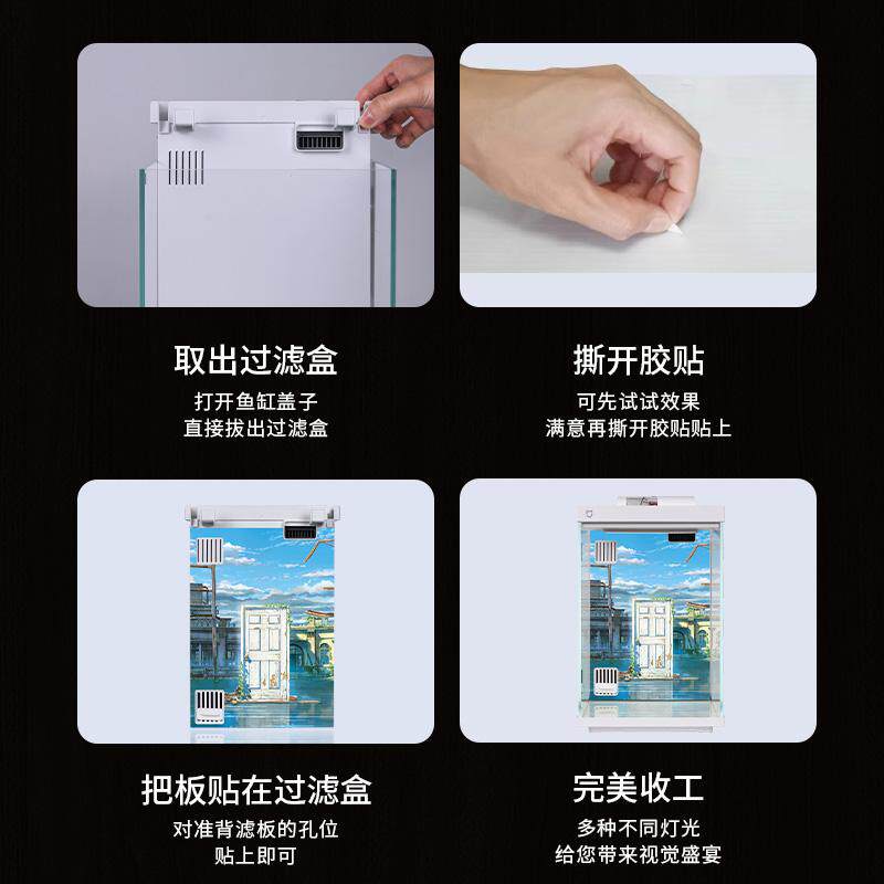 适配小米二代智能鱼缸背景板图画贴纸高清图造景卡通装饰品亚克力