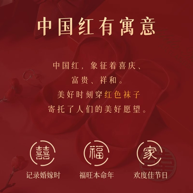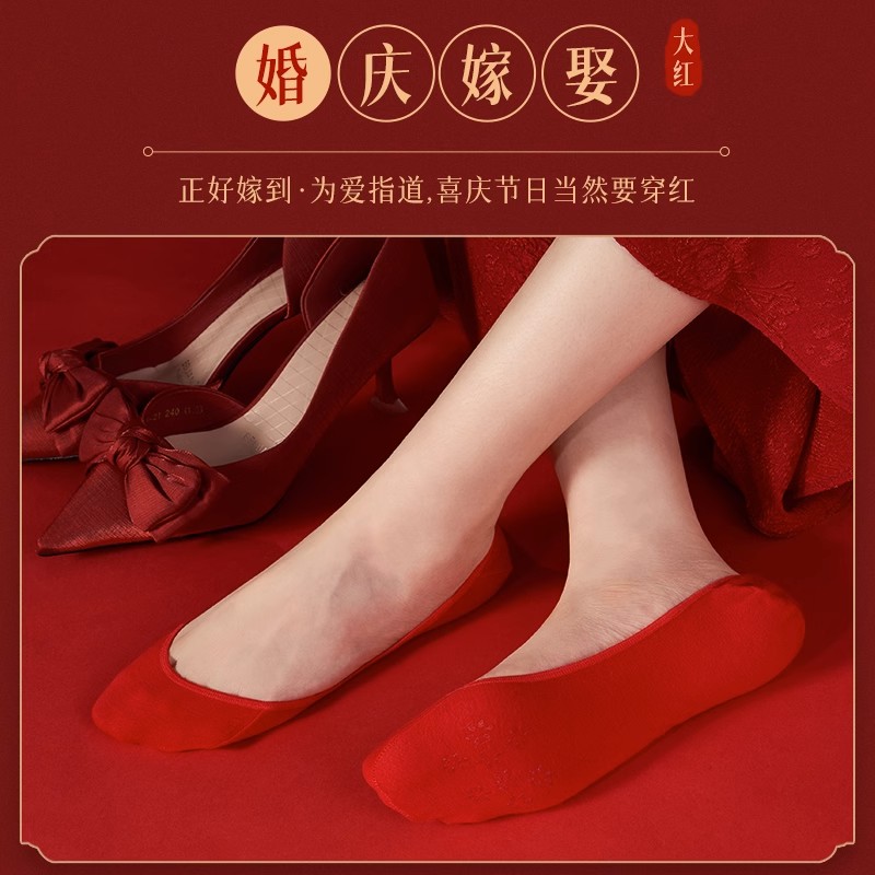 本命年大红色蕾丝船袜女春秋浅口隐形高跟鞋高档婚庆情侣红袜子男