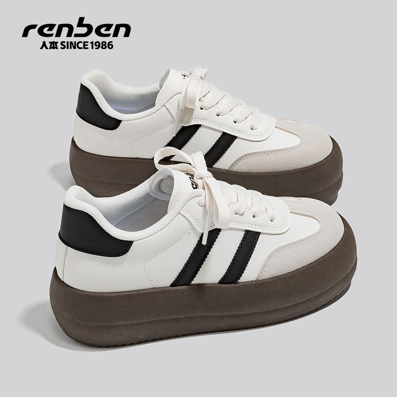 人本德训鞋女款2025春秋新款厚底百搭休闲舒适增高经典板鞋小白鞋
