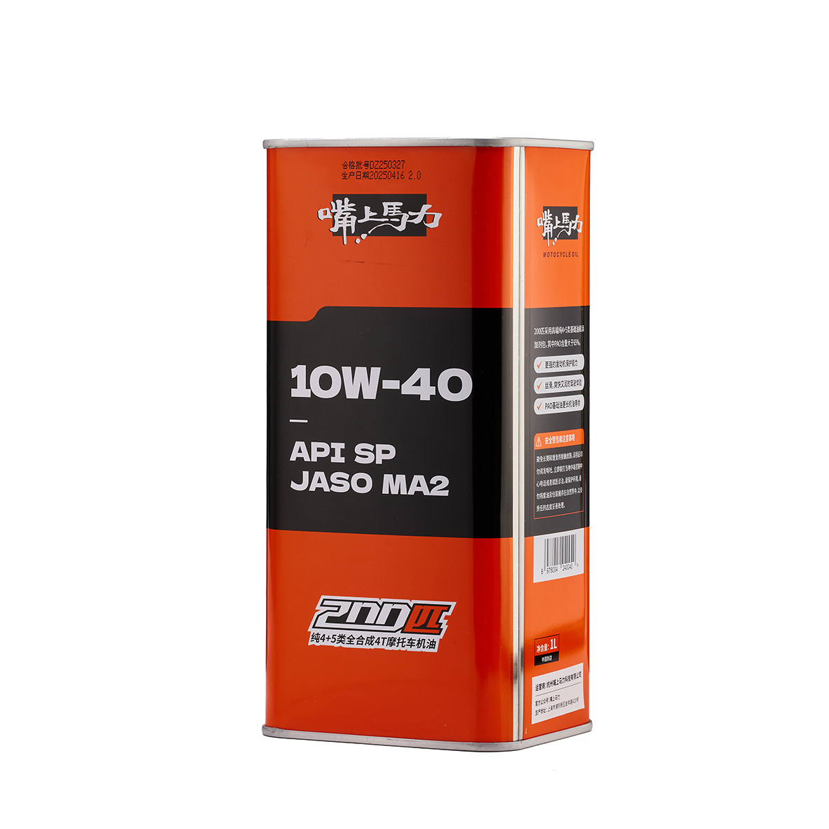 嘴上马力200匹2.0均衡长效版呆子10w4050百分百全合成摩托机油