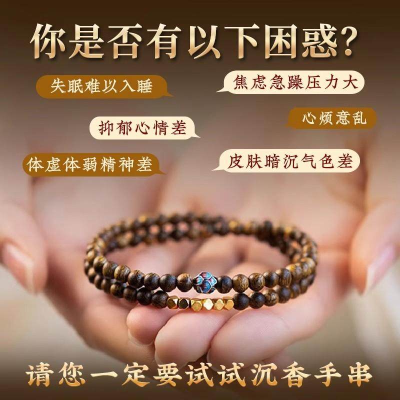 王菲同款沉香手串叠戴双圈芽庄奇楠安神助眠串珠男女情绪稳定手链