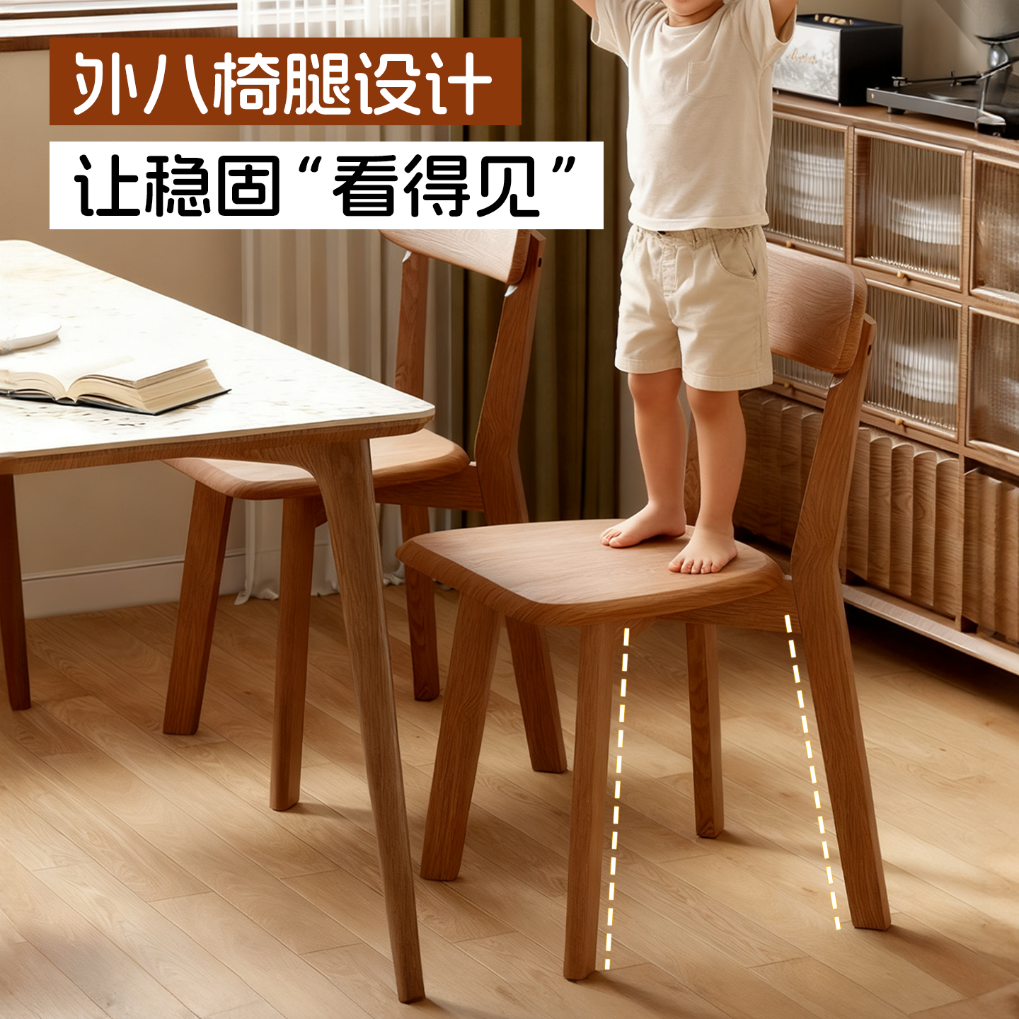 实木椅子家用加厚结实耐用靠背椅新款轻奢高级休闲餐厅中古风餐椅