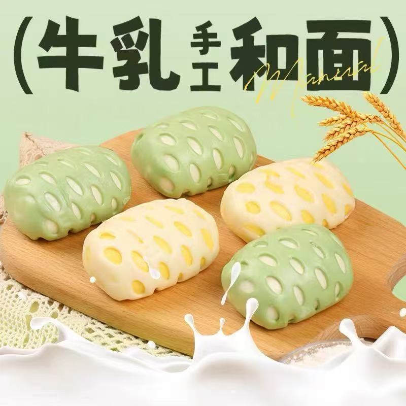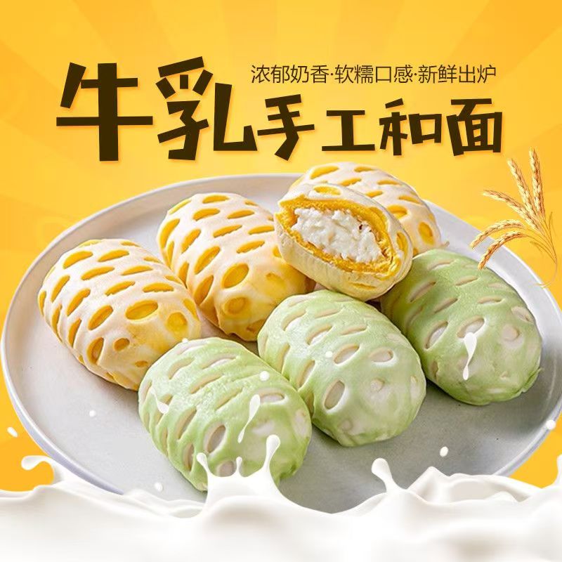 慕斯牛乳双拼网红包子奶香馒头卡通儿童早餐半成品加热即食豆沙包