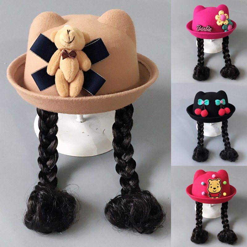 韩版宝宝帽1秋冬款毛呢帽潮女童假发2帽儿童帽子呢子盆帽女孩礼帽