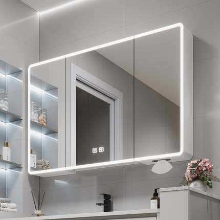 加高圆弧智能浴室镜柜卫生间美妆收纳一体镜子带插座置物架太空铝