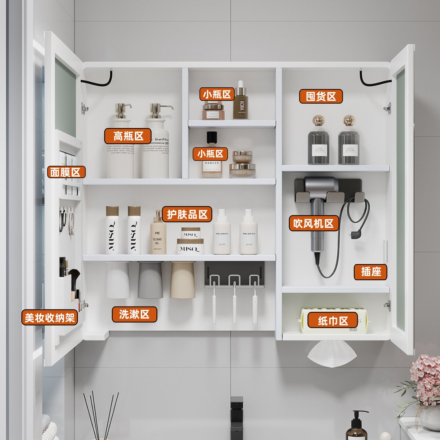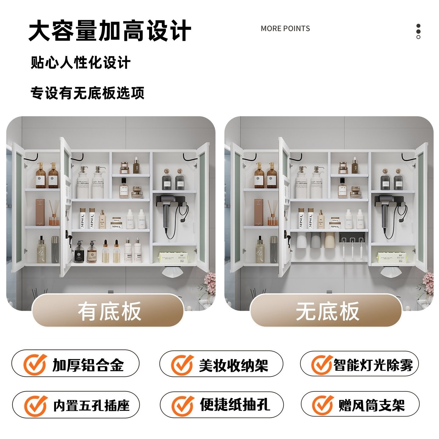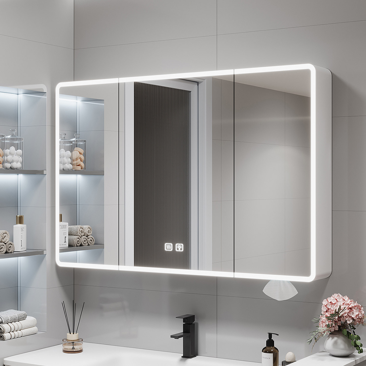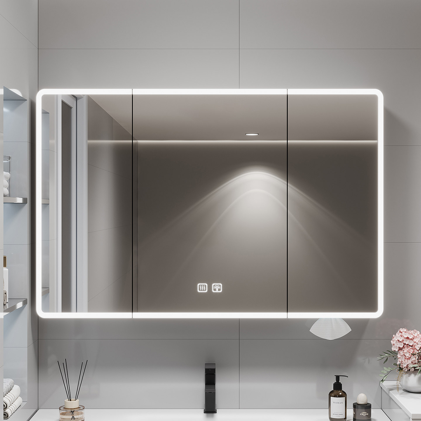 铝合金圆弧智能镜柜86高收纳一体