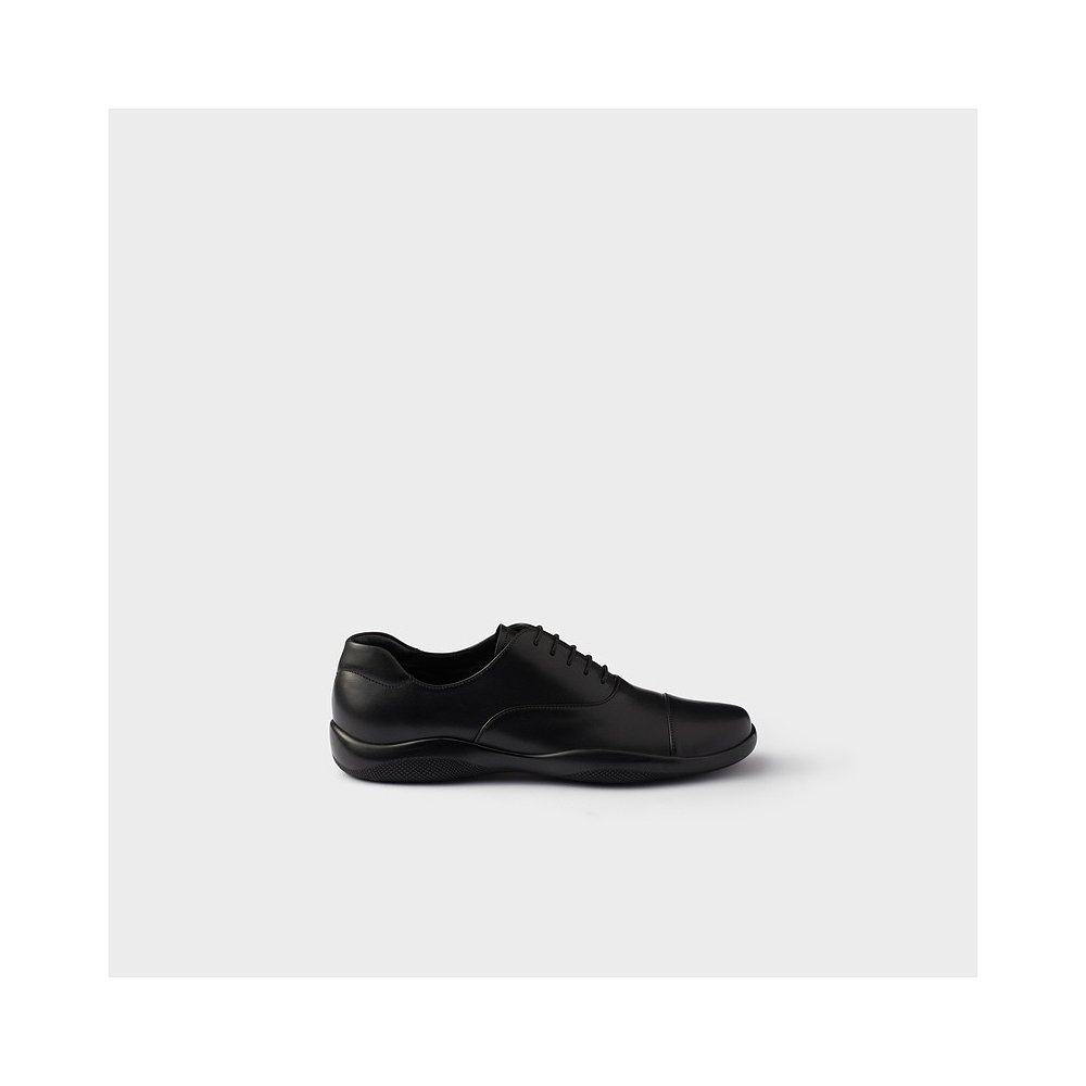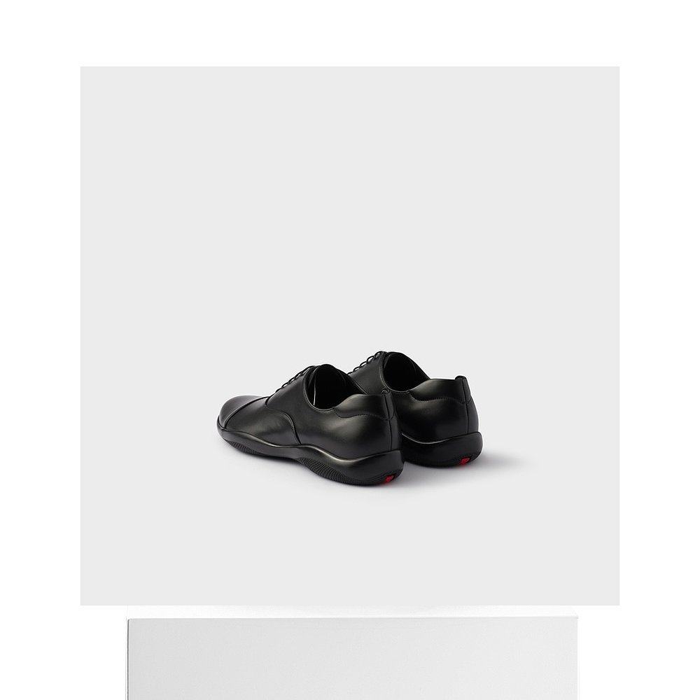 自营欧洲直邮Prada普拉达 Toblach系列男士黑色小牛皮系带皮鞋