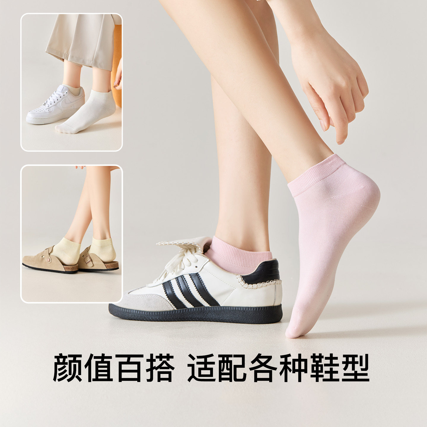 白色袜子女夏薄款纯棉短袜全棉无骨防臭袜抗菌女士船袜不掉跟春季