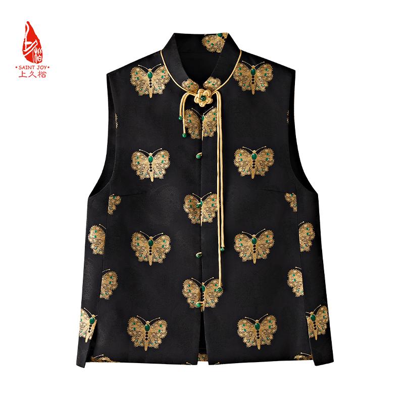 SAINTJOY/上久楷新中式宋锦女式马甲黑金蝴蝶 CY1044207005