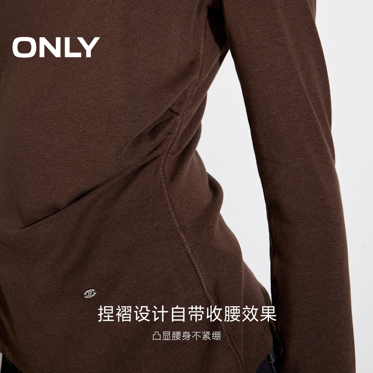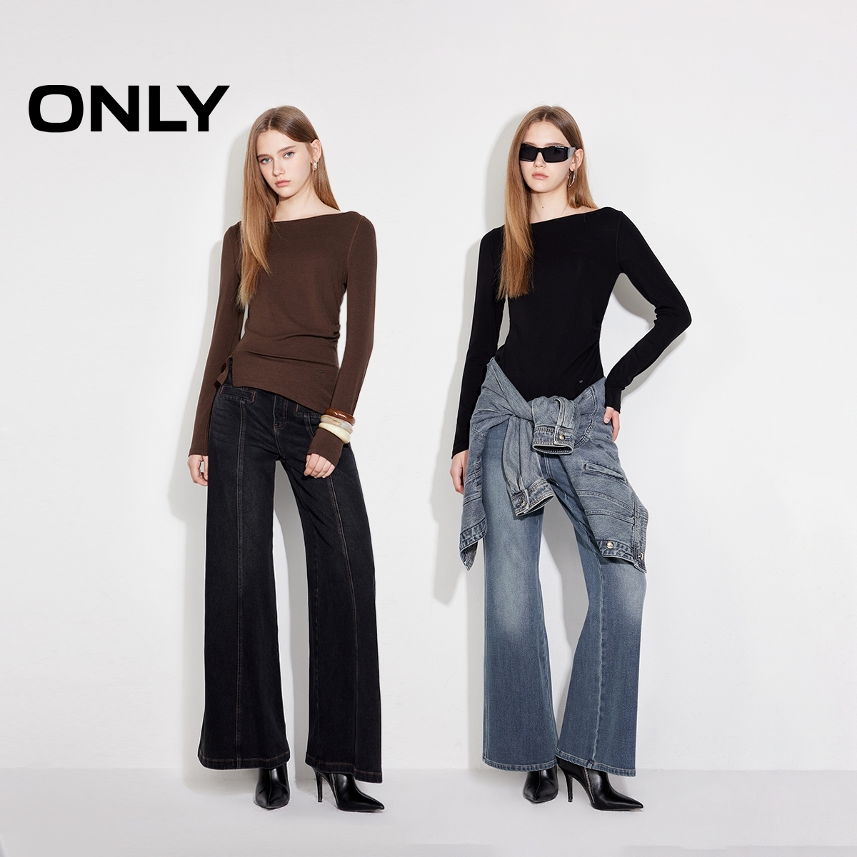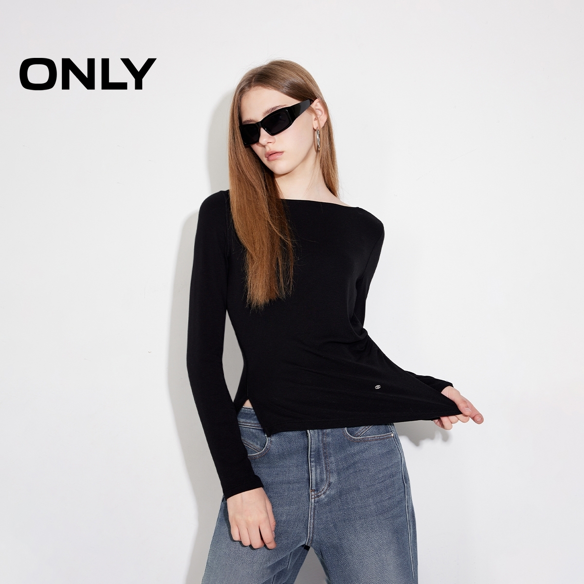 ONLY奥莱2025秋季新款设计感一字领收腰显瘦打底长袖T恤女
