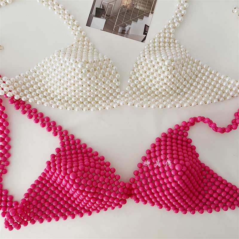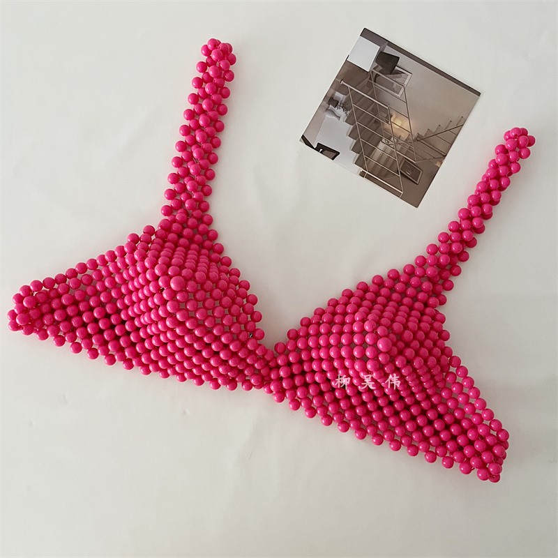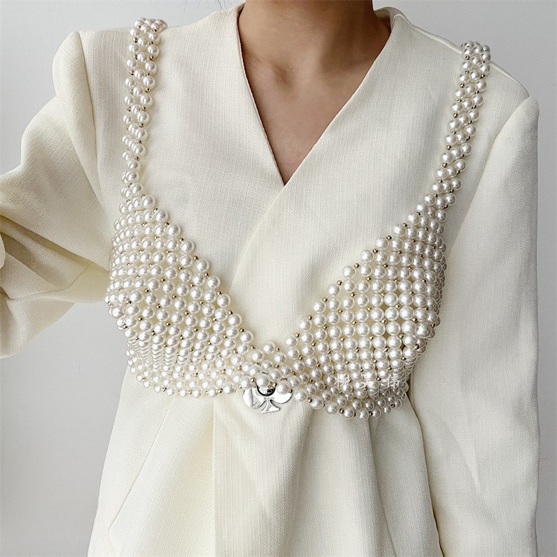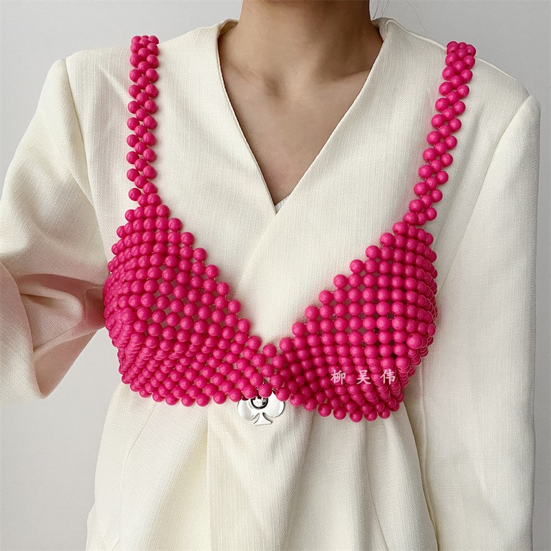 复古法式玫红色珍珠背带式吊带腰带女配连衣裙高级感西装串珠腰封
