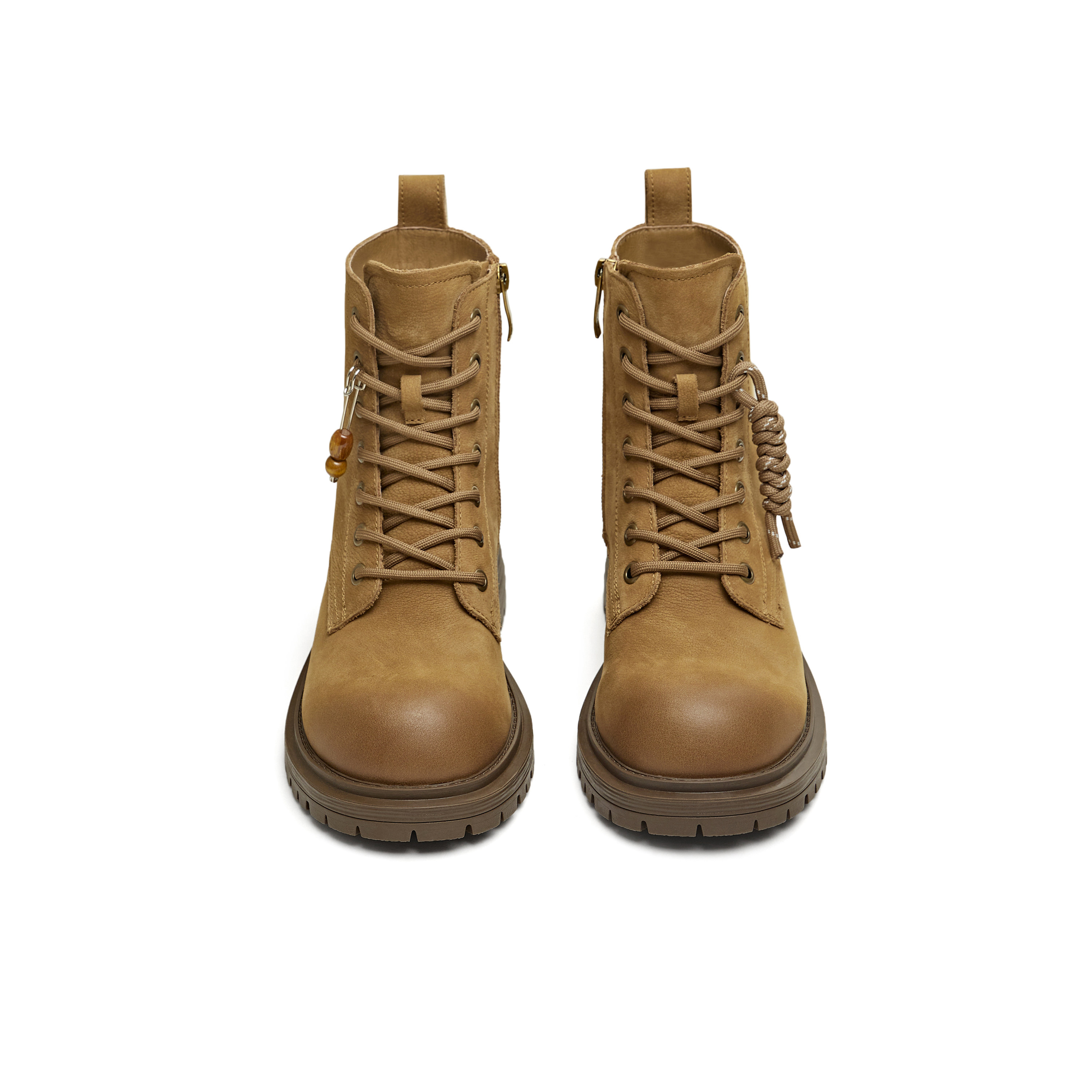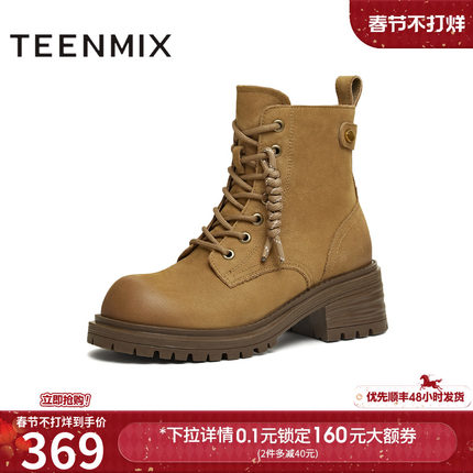 天美意粗跟厚底增高工装靴大黄靴加绒马丁靴女休闲短靴2025冬新款