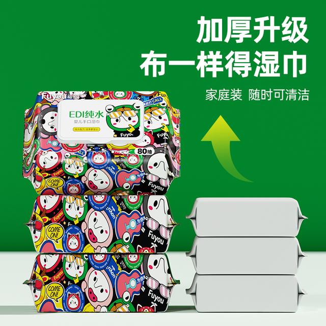 福佑母婴级5包80抽加大纯水宝宝家用加厚大包湿纸巾婴儿手口专用