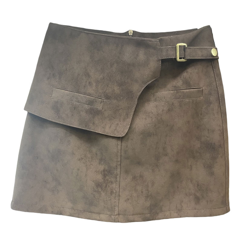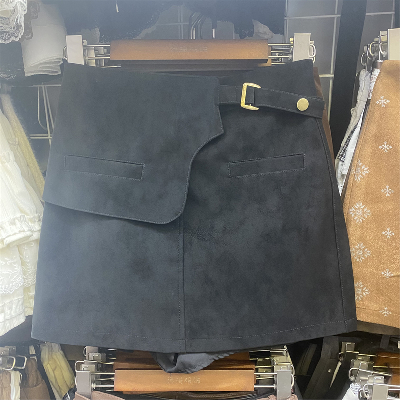 复古咖色麂皮绒半身裙女秋冬2025新款高腰显瘦A辣妹字包臀短裙子