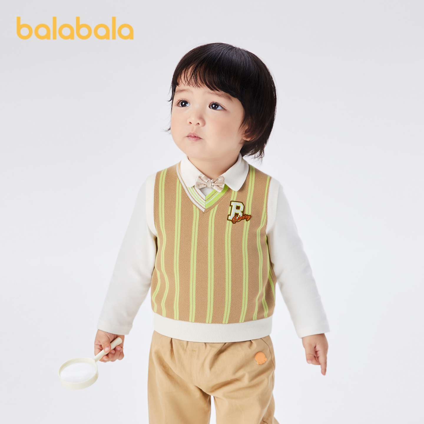 巴拉巴拉童装儿童背心马甲V领针织衫男童条纹毛衣秋季套头衫洋气