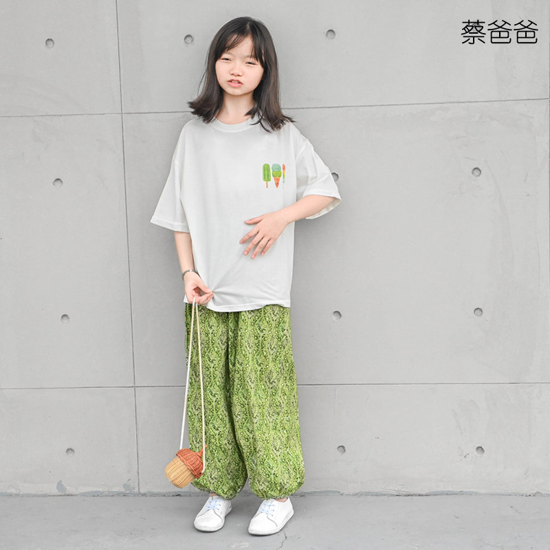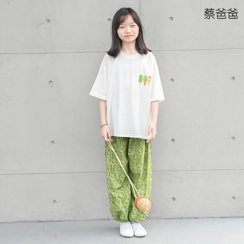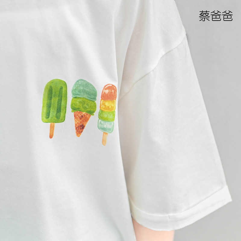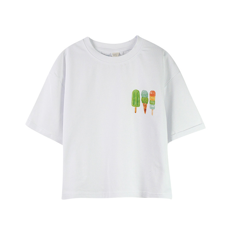 蔡爸爸夏装 白色短袖t恤 大童女孩洋气卡通冰棒宽松上衣服659+510
