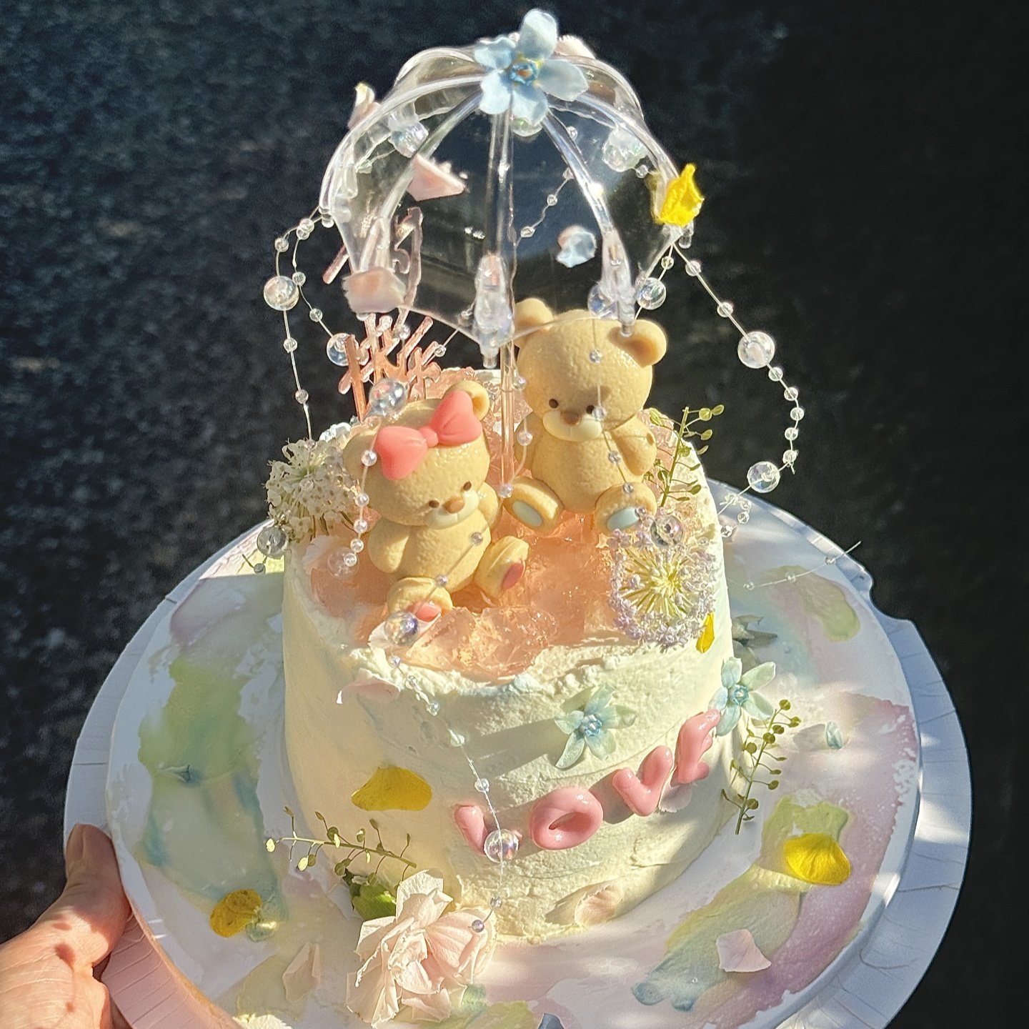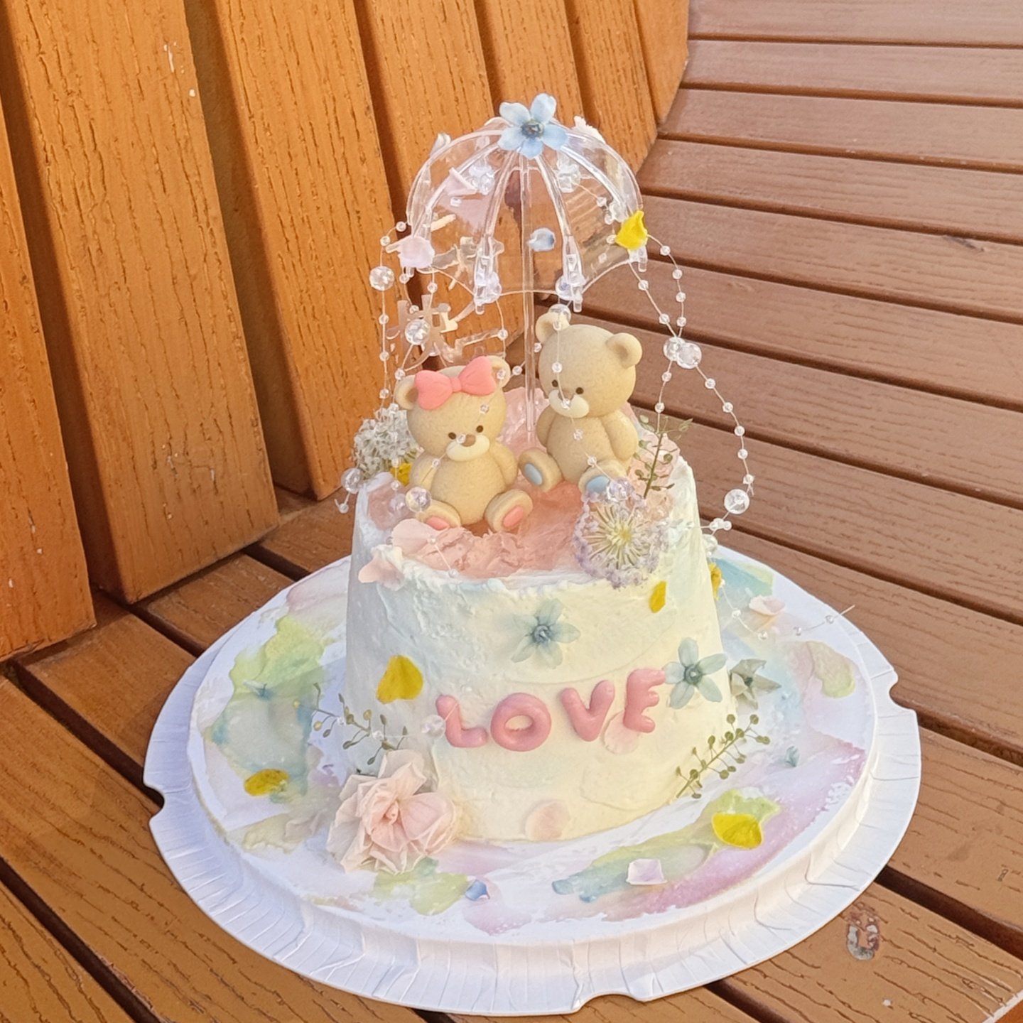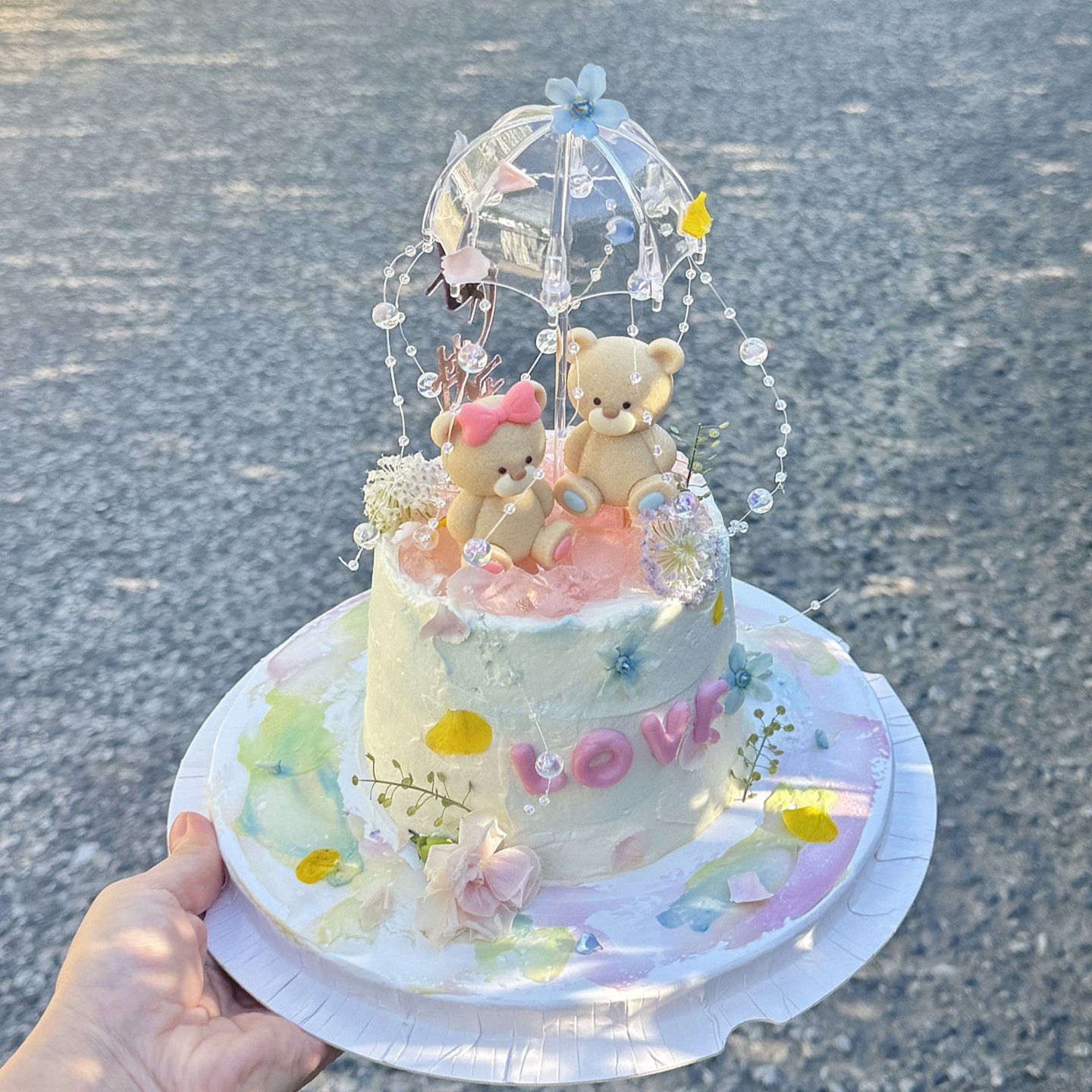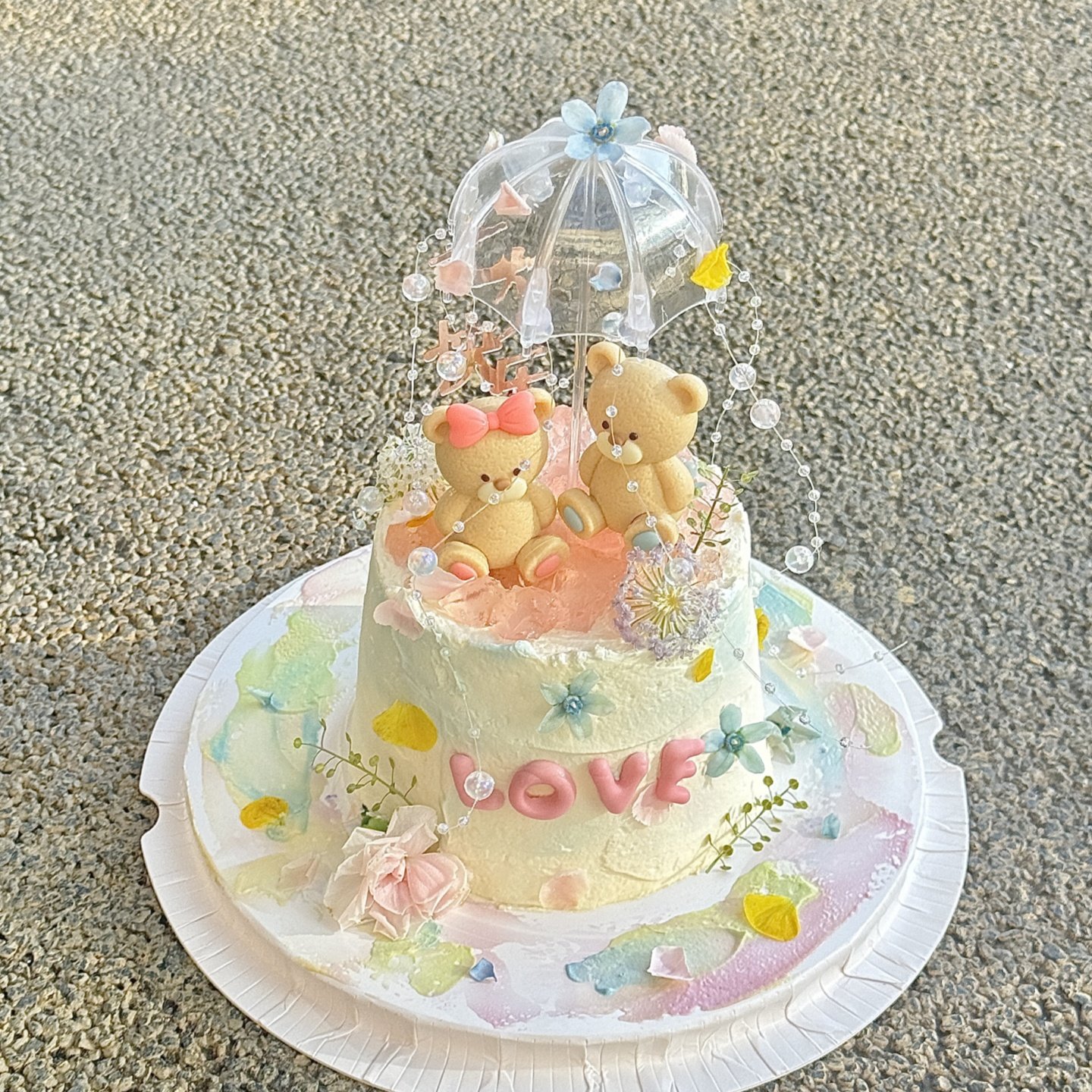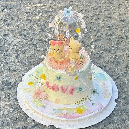 2.14网红情人节蛋糕装饰可爱坐姿小熊摆件情侣节日透明小雨伞插件