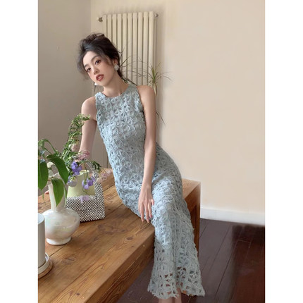 SYT浪漫迷人 法式设计感镂空连衣裙女夏季新款直筒气质显瘦背心裙