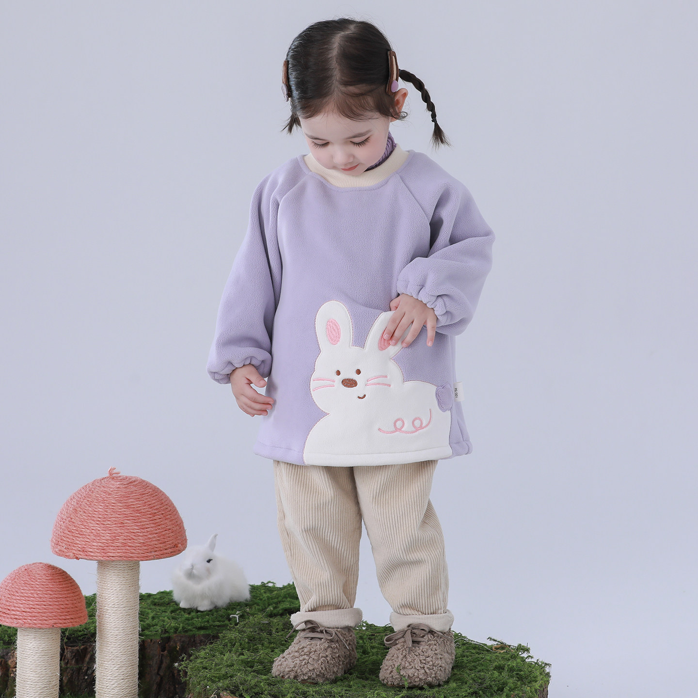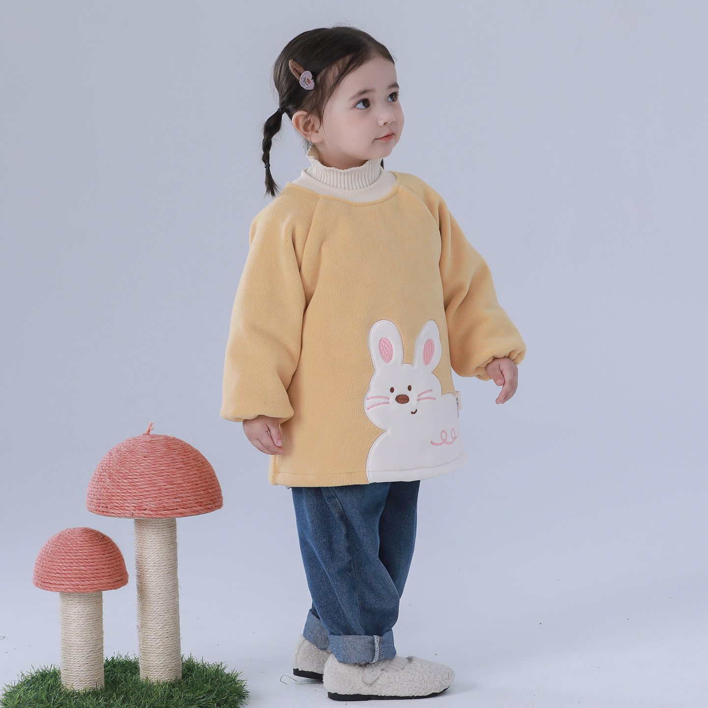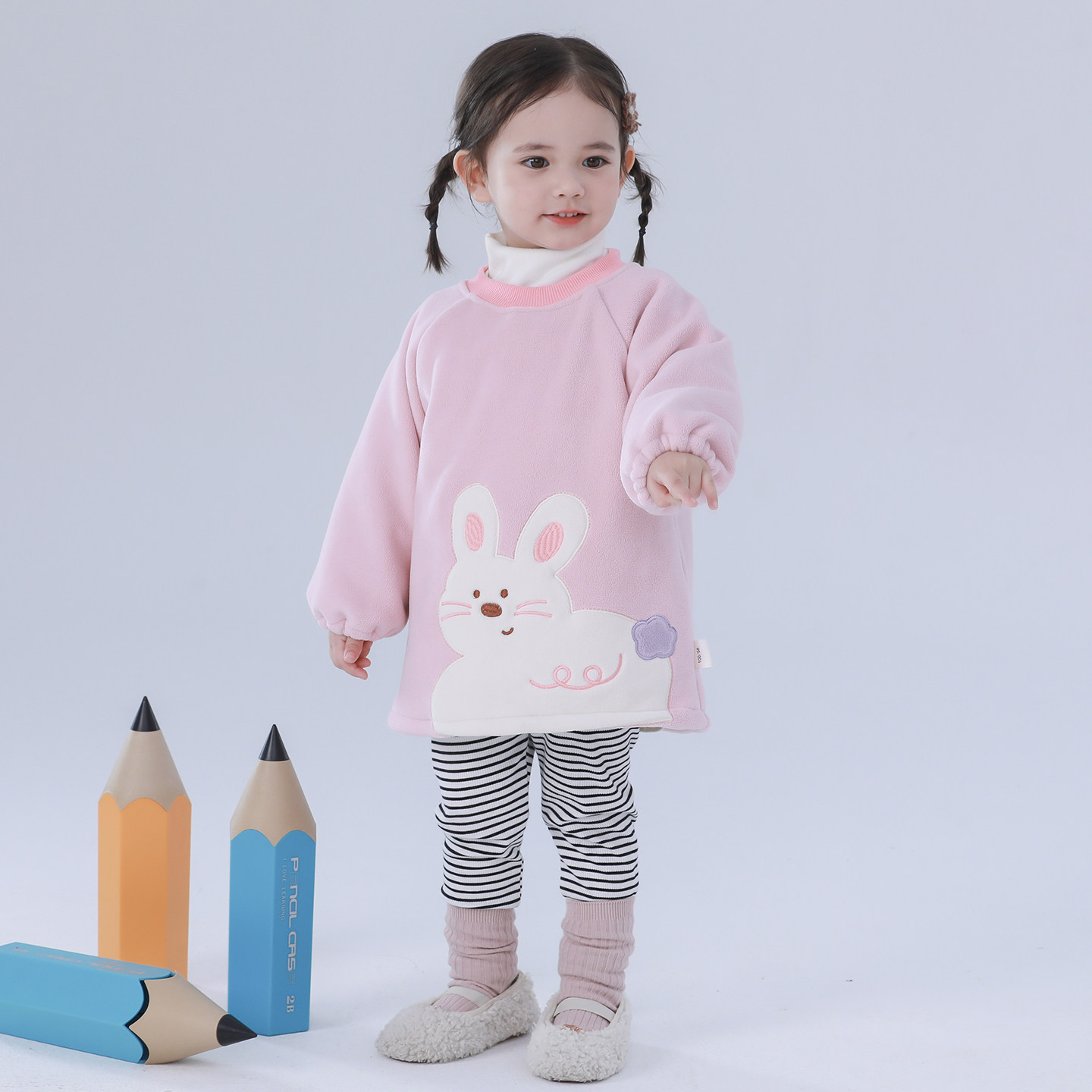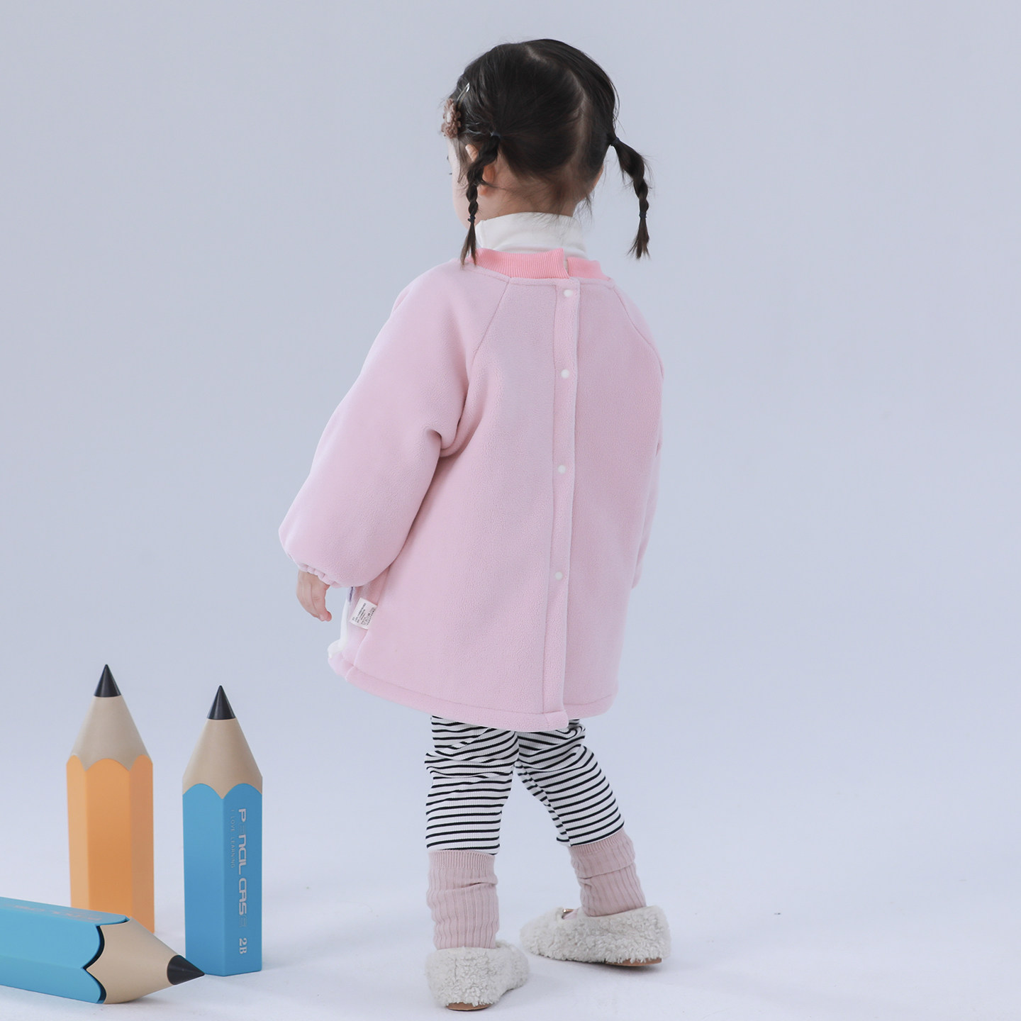 宝宝罩衣秋冬季奥粒绒儿童围裙防脏防水幼儿反穿衣女童羽绒服护衣