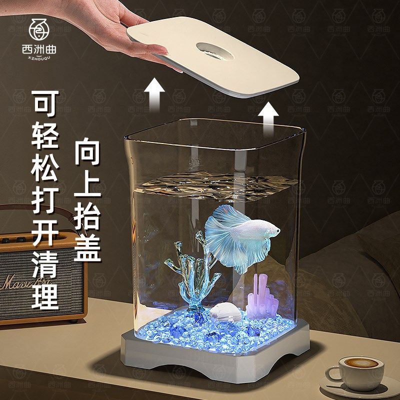 斗鱼缸小型造景生态全套养鱼专用水族箱带灯创意金鱼缸桌面小鱼缸