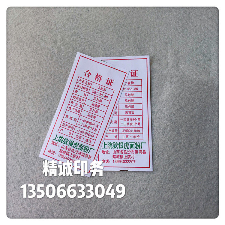 厂家专业定做面粉标签合格证 防水洗水唛布标 3色印刷量大优惠