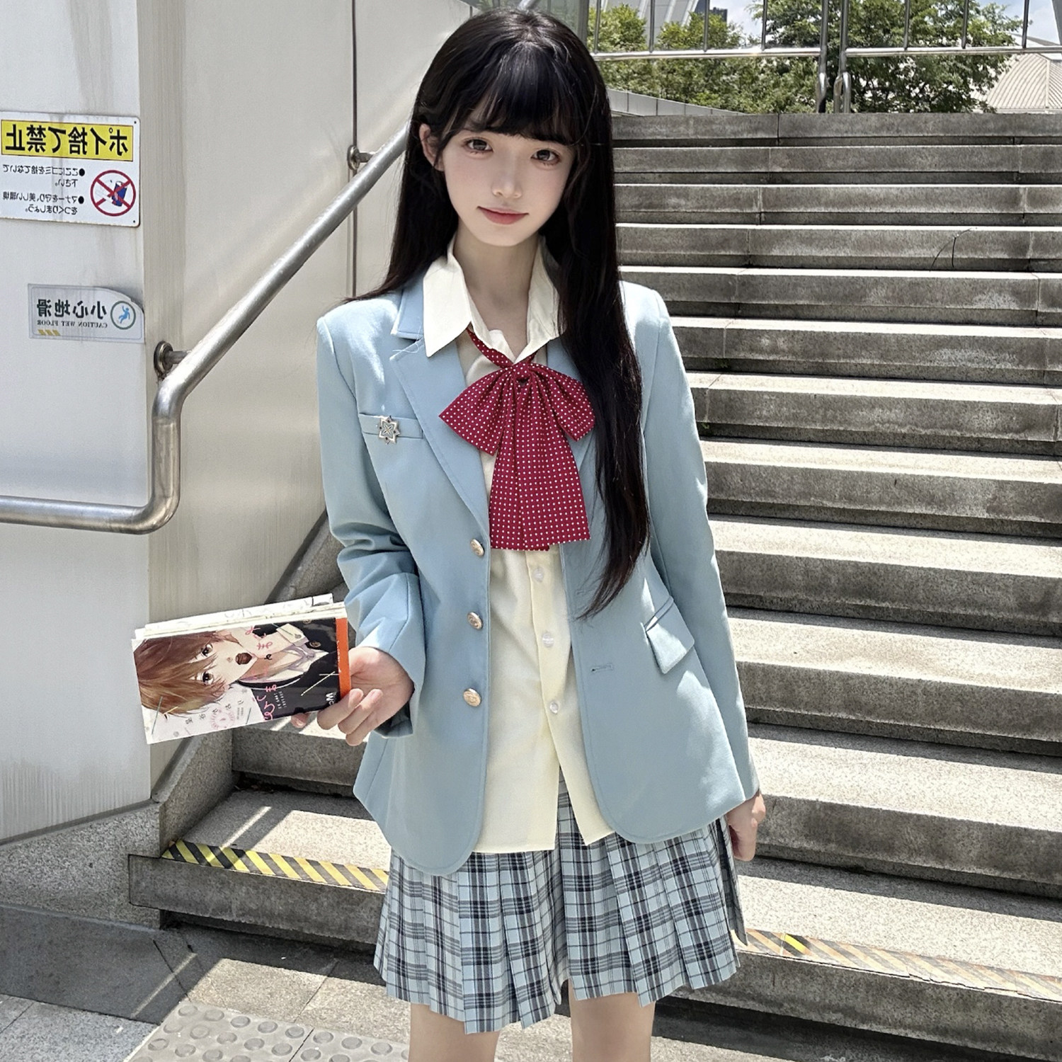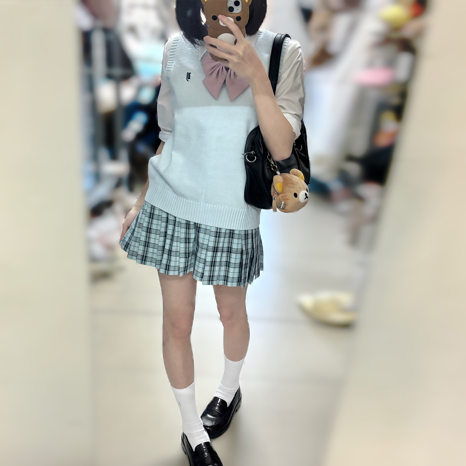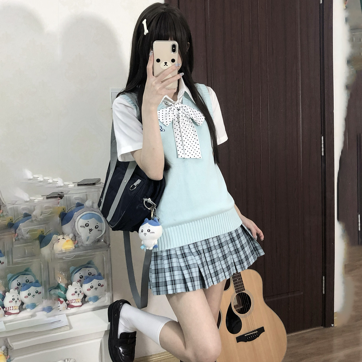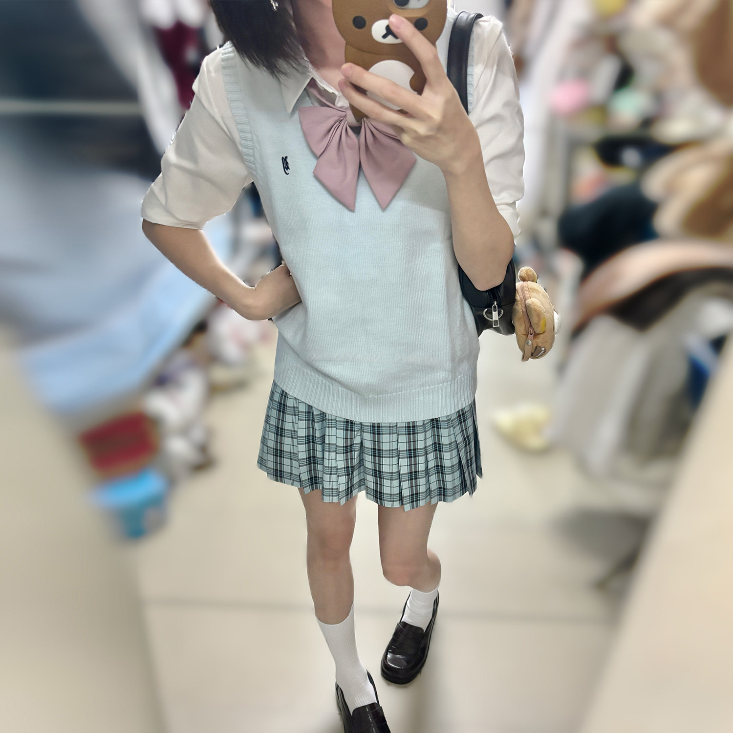 花千猪新品 青空格裙 jk制服校供感a字型百褶裙绿格百搭款jk裙