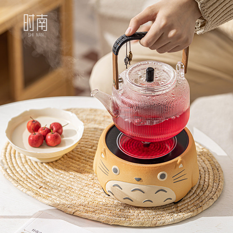 龙猫围炉煮茶家用室内电陶炉煮茶器全套烤茶炉玻璃养生花茶煮茶壶