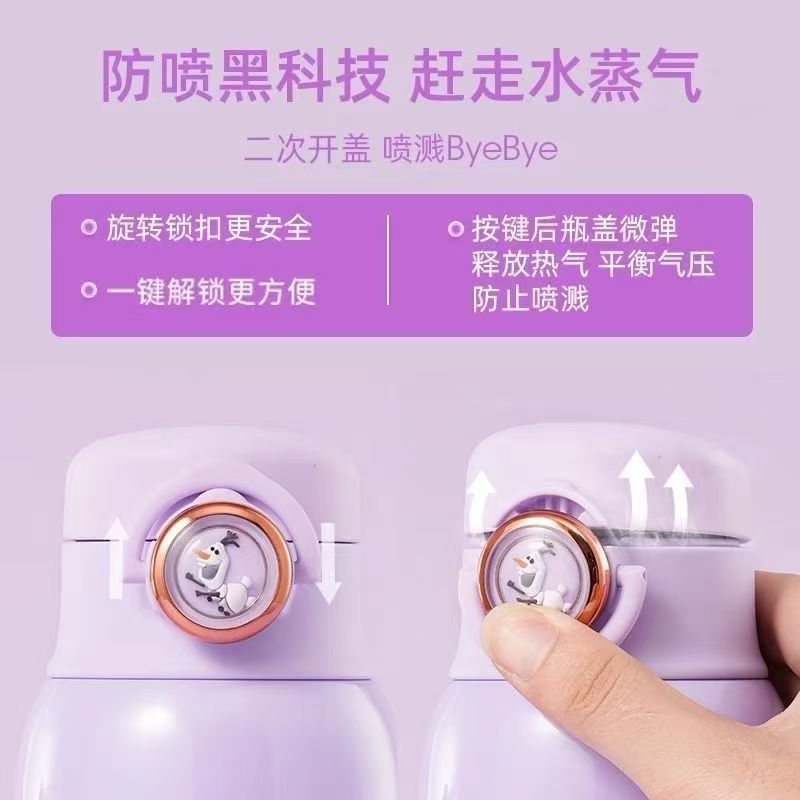 迪士尼米妮保温杯儿童水壶双盖冰雪奇缘女宝艾莎公主女童水杯壶